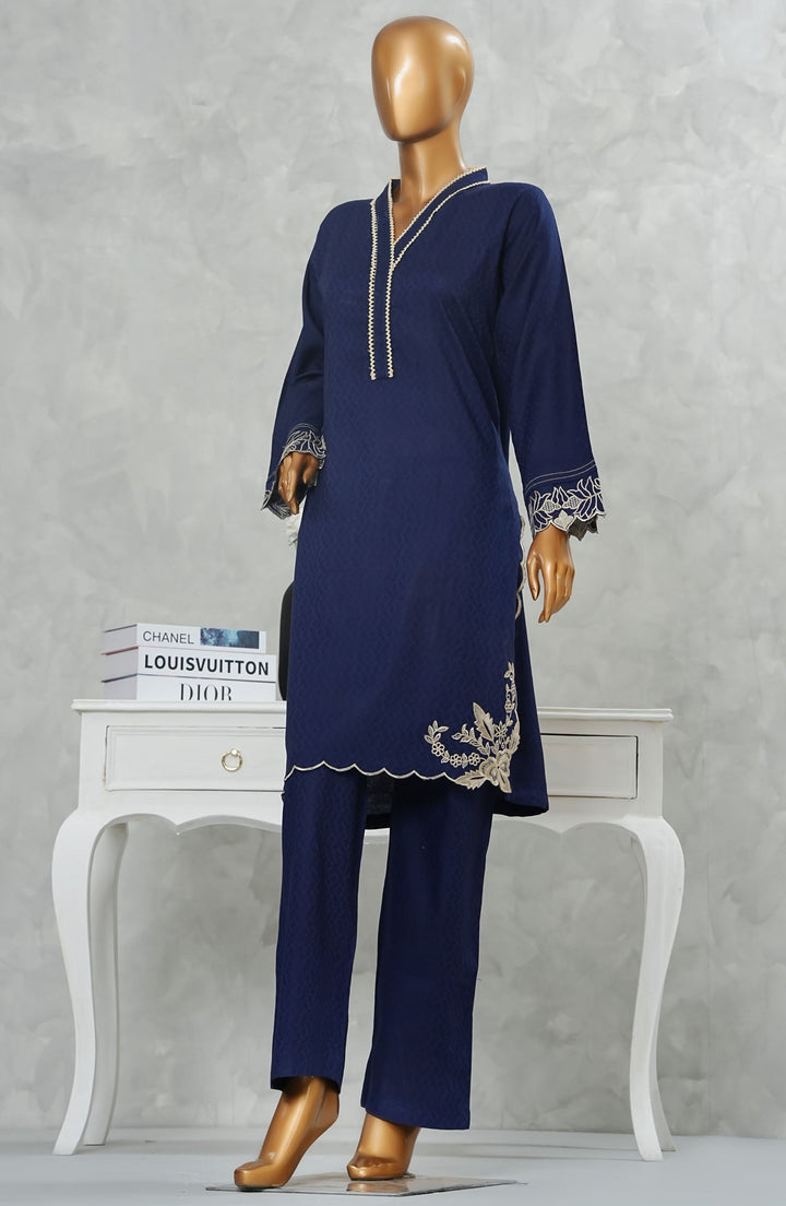 Kaya by Amna Khadija Embroidered Cotton Stitched 2 Piece Suit - DS-112 B - AM25KAYAD2 - Dark Blue - Summer Collection