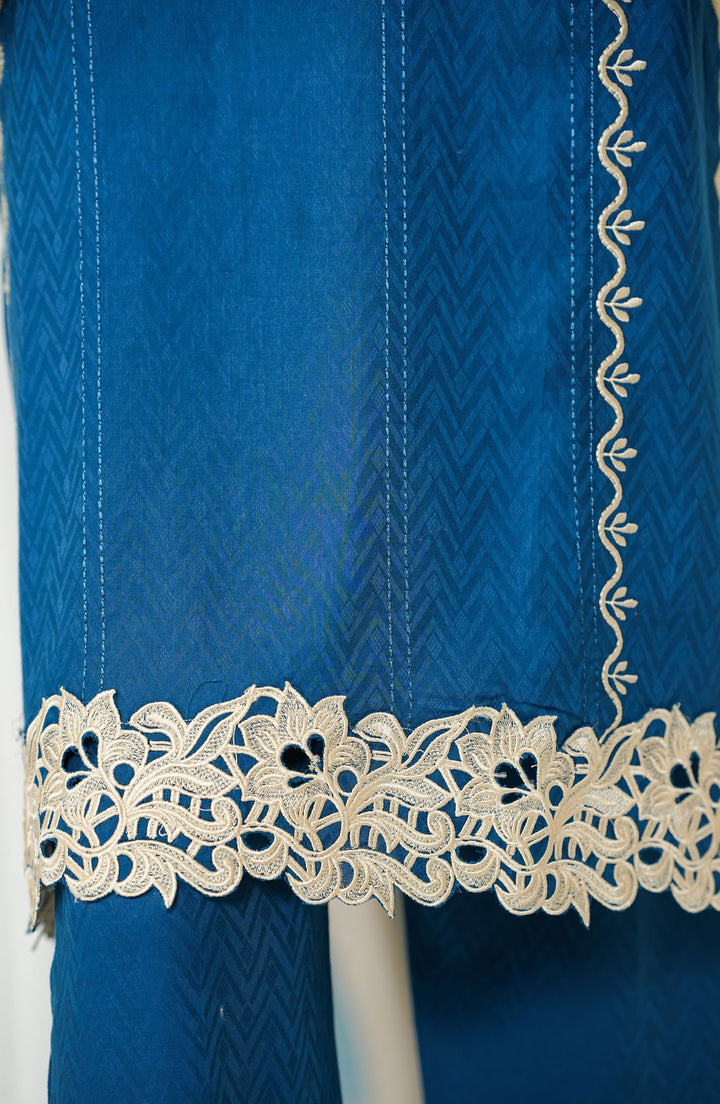 Kaya by Amna Khadija Premium Embroidered Cutwork Jacquard Cambric Stitched 2 Piece Suit - KEE-01 - Blue