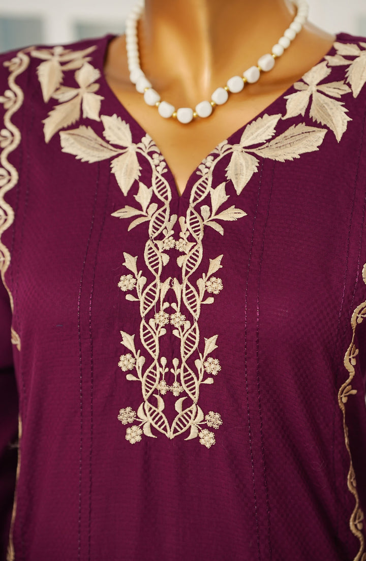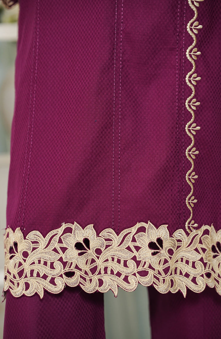 Kaya by Amna Khadija Premium Embroidered Cutwork Jacquard Cambric Stitched 2 Piece Suit - KEE-02 - Purple