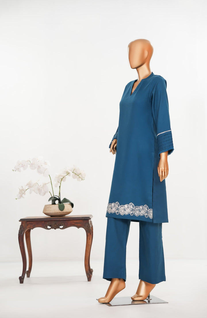 Khait Pret by Amna Khadija Embroidered Dobby Cotton Stitched 2 Piece Co ord Set - AKKP-04 - AM25KHAI - Blue - Casual Collection
