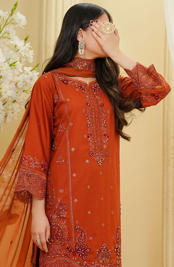 La fleur Cotton 3 Piece Orange D-27
