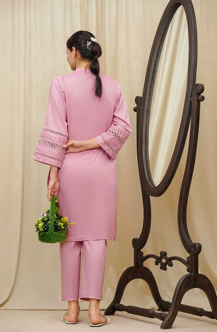 Maahe by Amna Khadija Solids Jacquard Stitched 2 Piece - D-05 - AM25M - Light Pink - Casual Collection