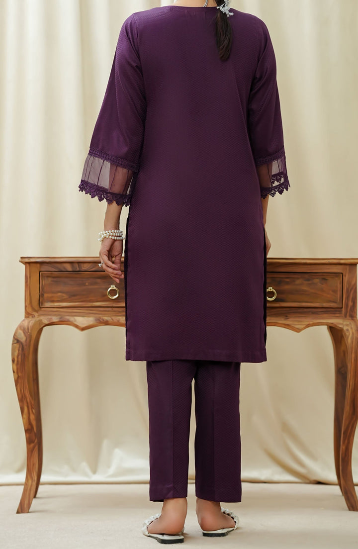 Maahe by Amna Khadija Solids Jacquard Stitched 2 Piece Suit - MLPS-11 - AM25M3 - Purple - Casual Collection