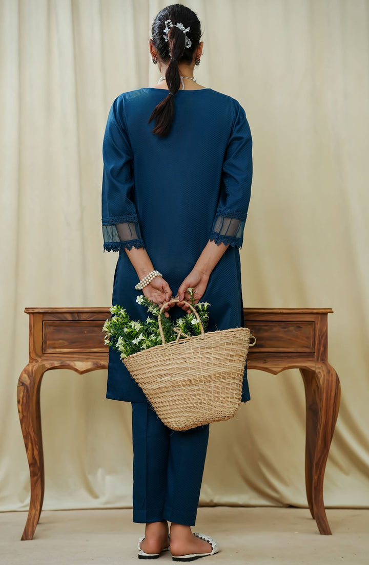 Maahe by Amna Khadija Solids Jacquard Stitched 2 Piece Suit - MLPS-12 - AM25M3 - Blue - Casual Collection