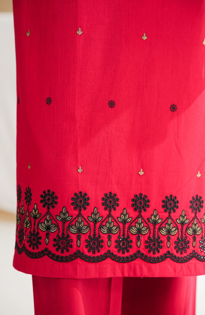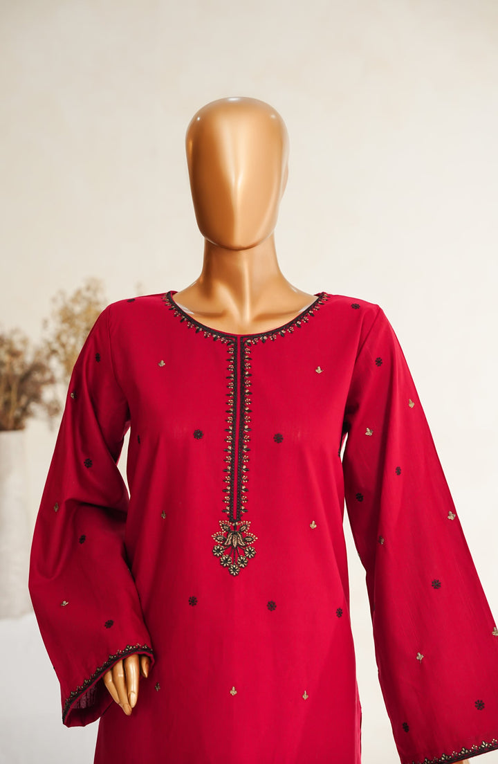 Maanavi by Amna Khadija Luxury Embroidered Khaddar Stitched 2 Piece Suit - MEK-04 - AM25MEKH - Red - Winter Collection