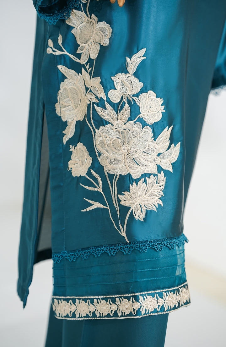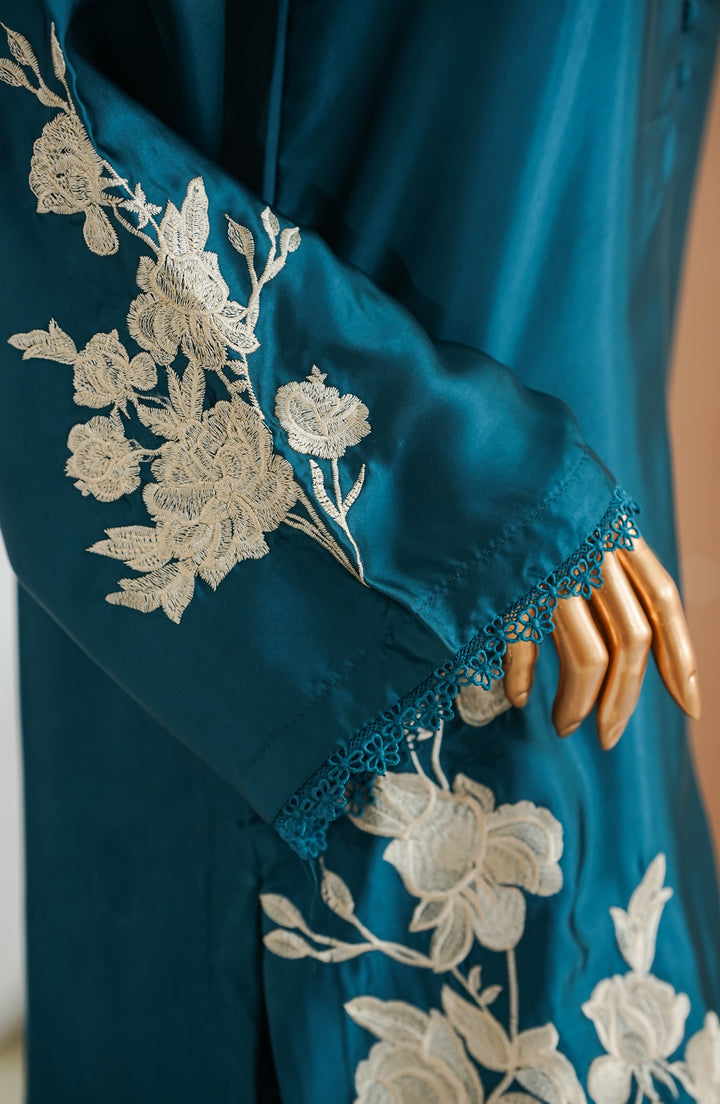 Mohar by Amna Khadija Embroidered Shamooz Silk Stitched 2 Piece Suit - AKMS-01 - Teal - Winter Collection