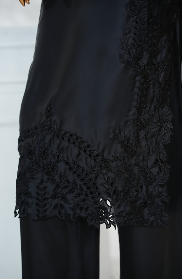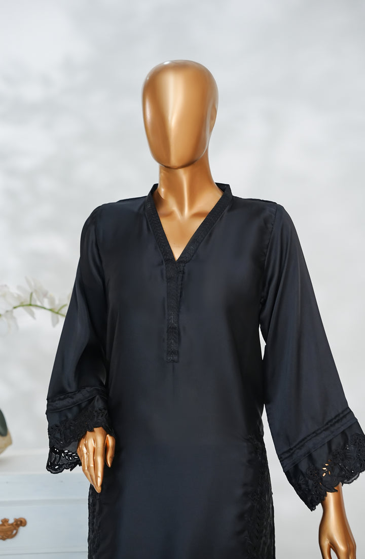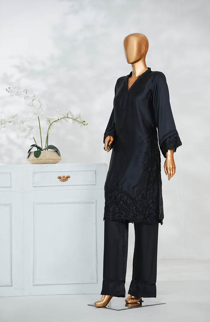 Mohar by Amna Khadija Embroidered Shamooz Silk Stitched 2 Piece Suit - AKMS-07 - Black - Winter Collection