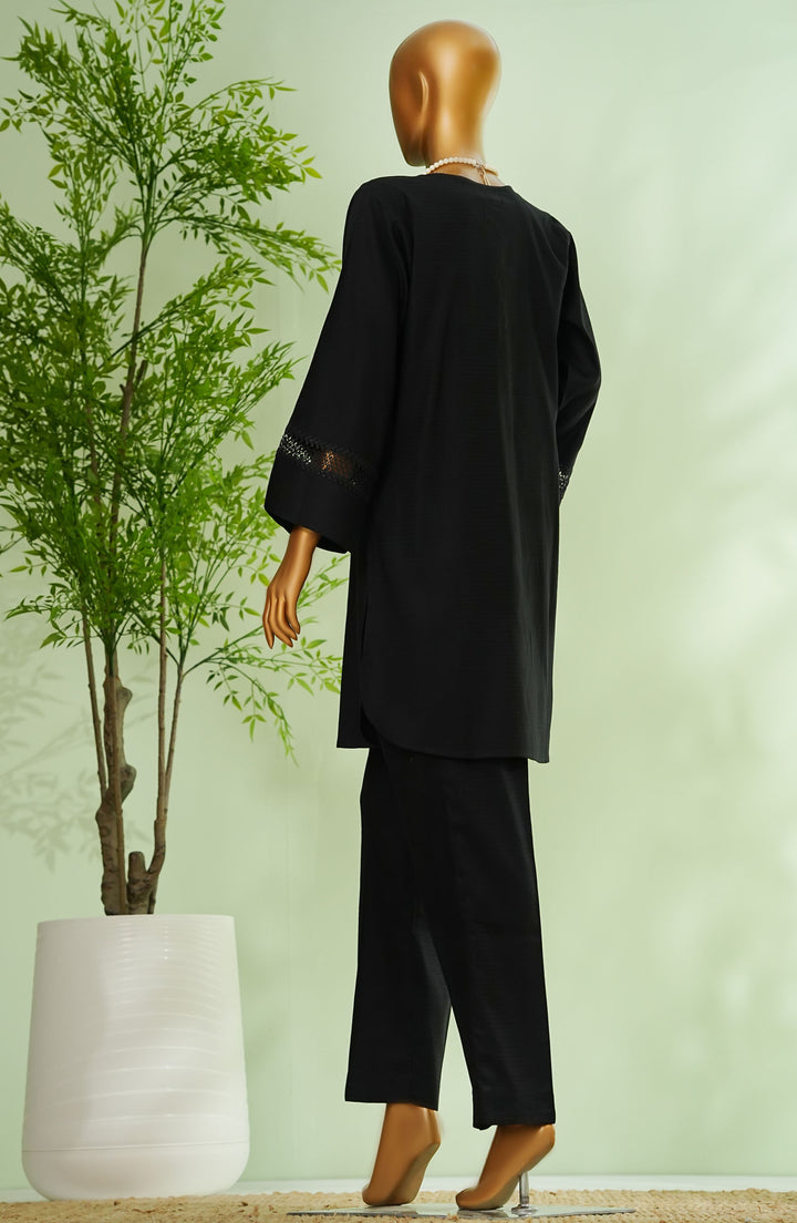 Monochrome by Amna Khadija Embroidered Cotton Stitched 2 Piece Suit - D - 04 - Black