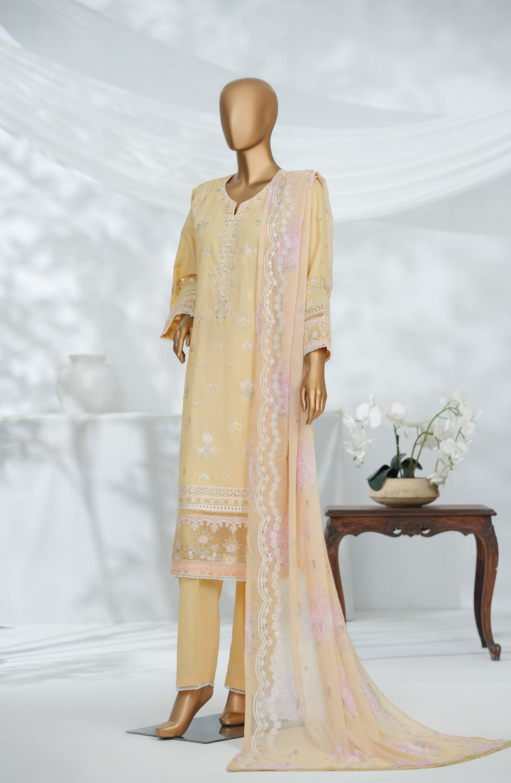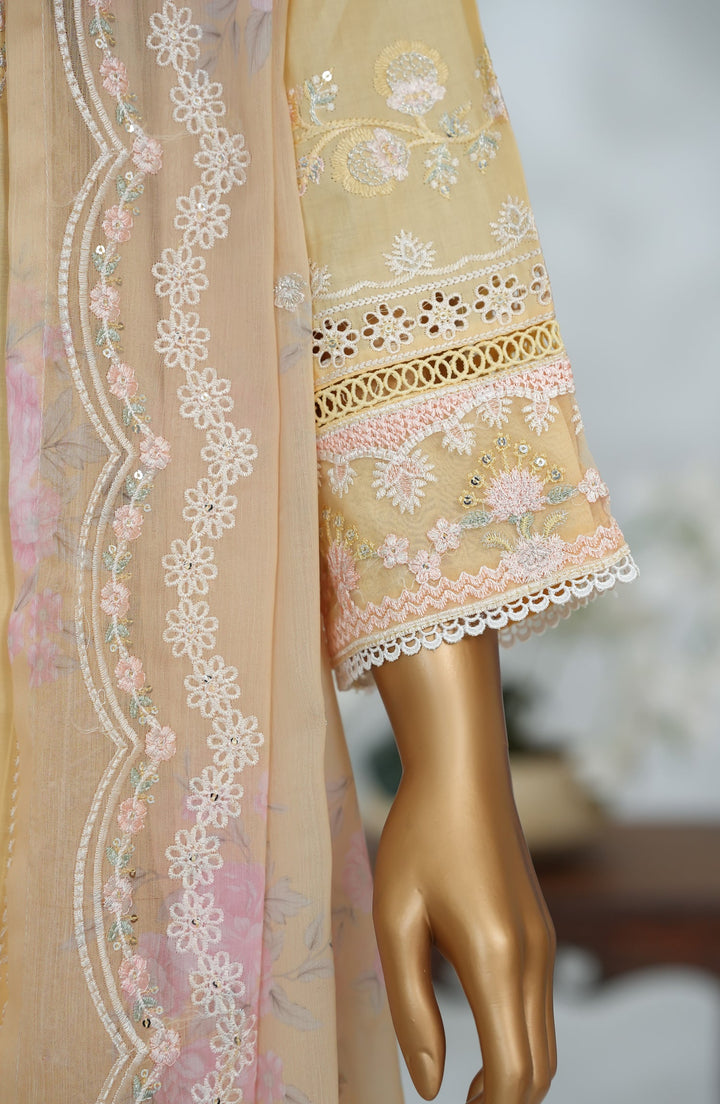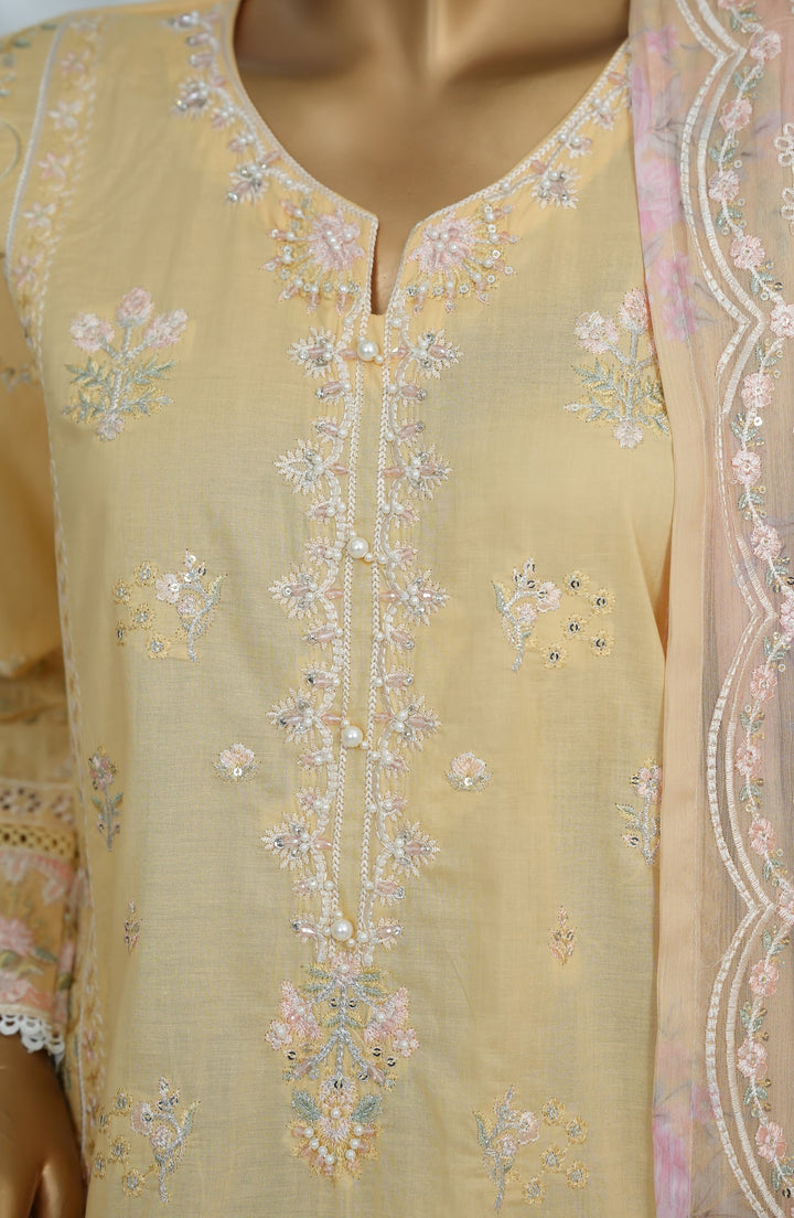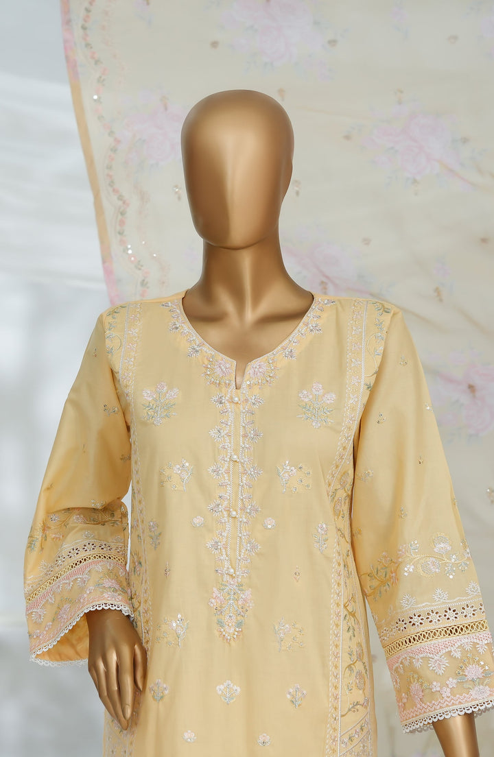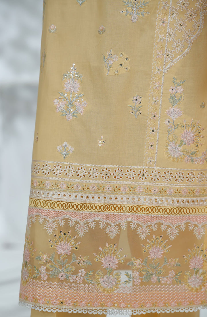 Morich by Amna Khadija Embroidered Cotton Stitched 3 Piece Suit - Rang e Haya-A - AM25RIC - Yellow - Luxury Festive Collection