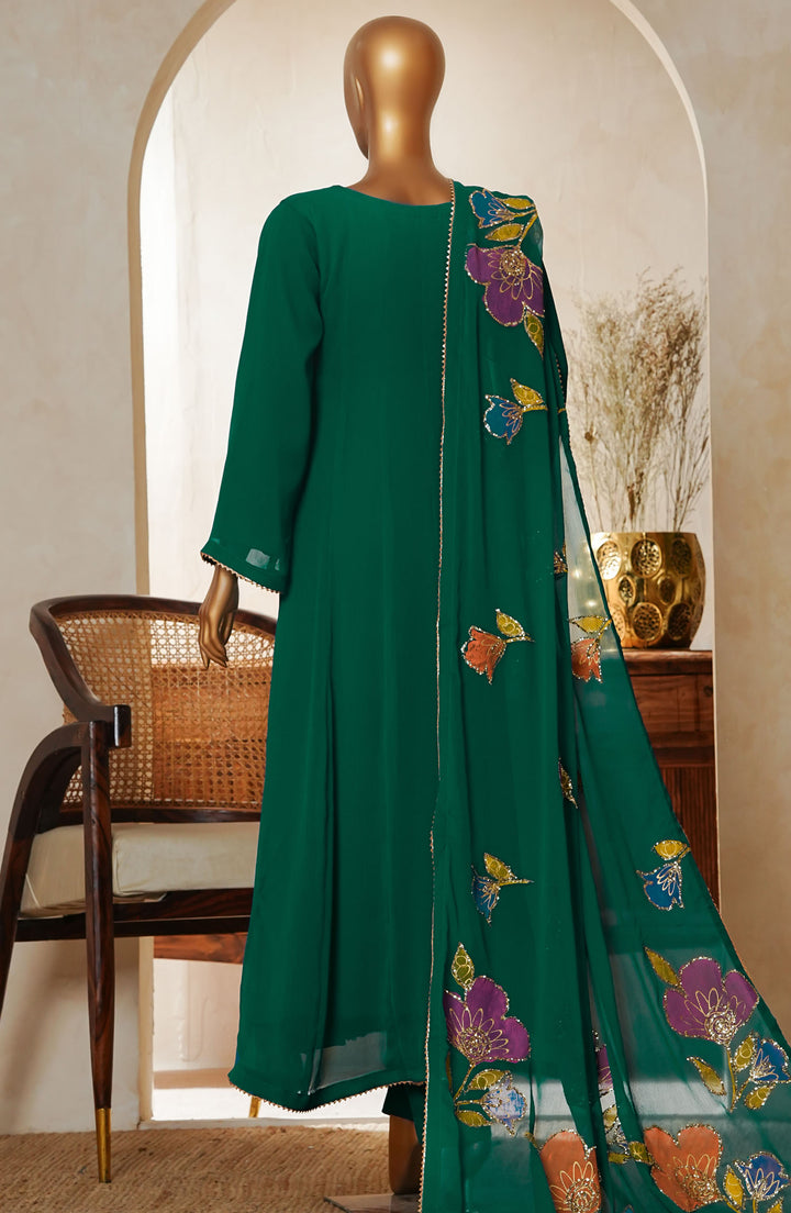 Naqsh by Amna Khadija Fancy Chiffon Stitched 3 Piece Frock - D - 01 - Green