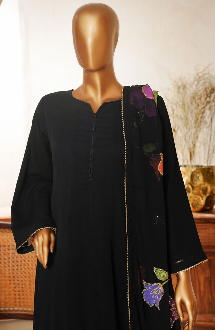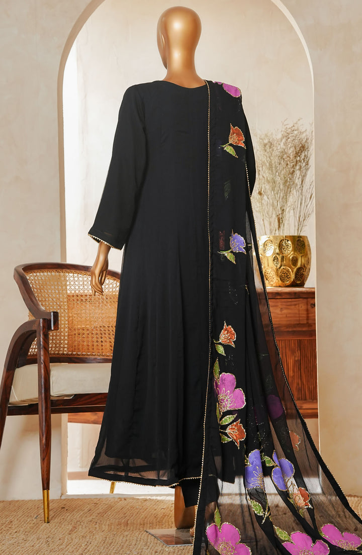 Naqsh by Amna Khadija Fancy Chiffon Stitched 3 Piece Frock - D - 02 - Black