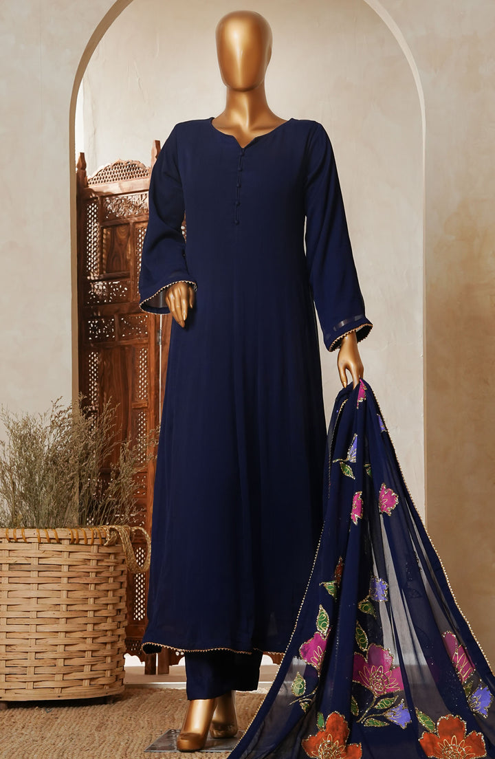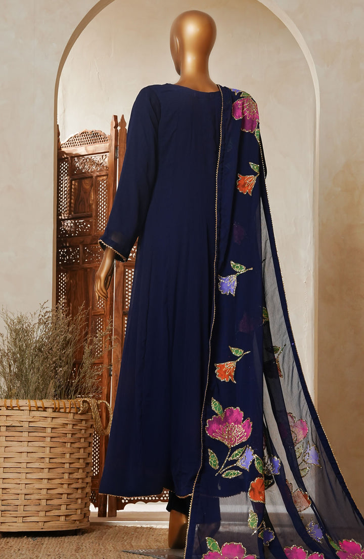 Naqsh by Amna Khadija Fancy Chiffon Stitched 3 Piece Frock - D - 04 - Blue