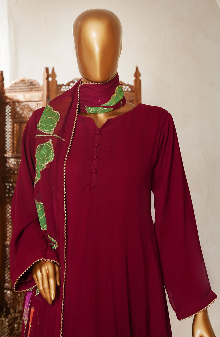 Naqsh by Amna Khadija Fancy Chiffon Stitched 3 Piece Frock - NLF-02 - AM25NLF - Red - Festive Collection