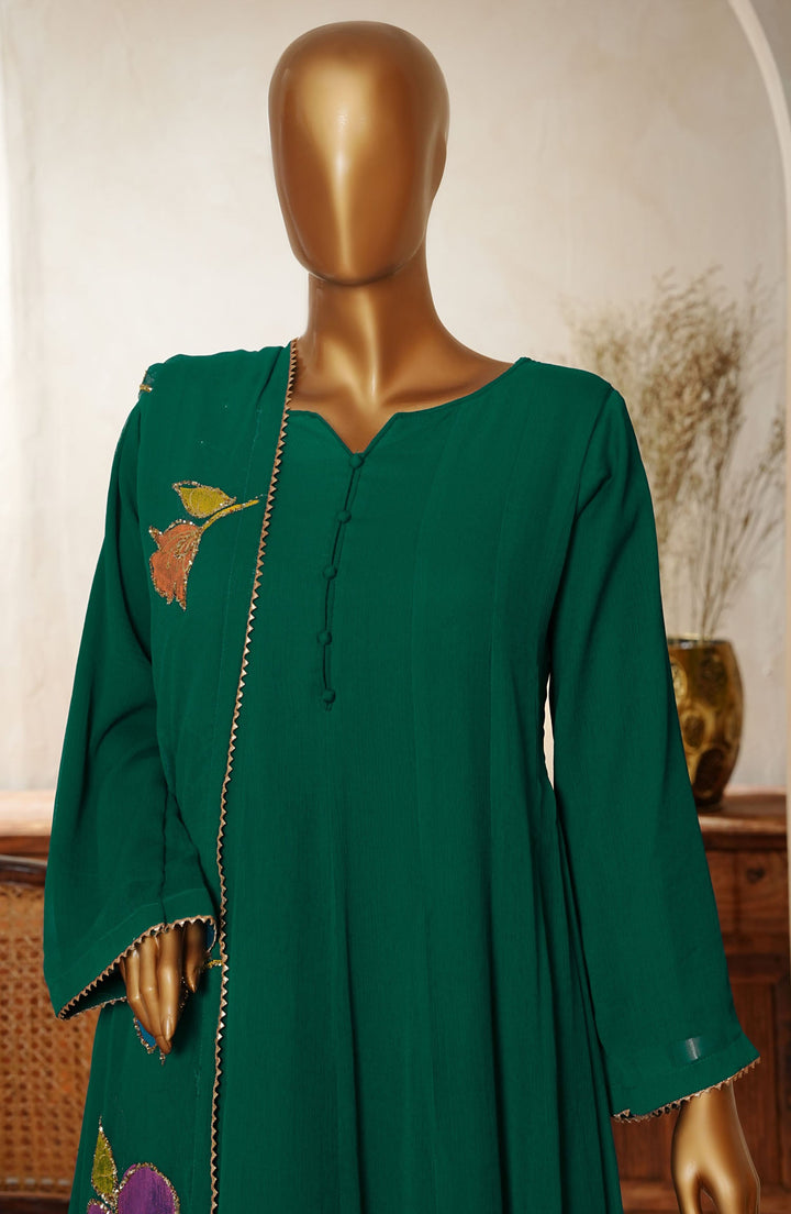 Naqsh by Amna Khadija Fancy Chiffon Stitched 3 Piece Frock - NLF-04 - AM25NLF - Green - Festive Collection