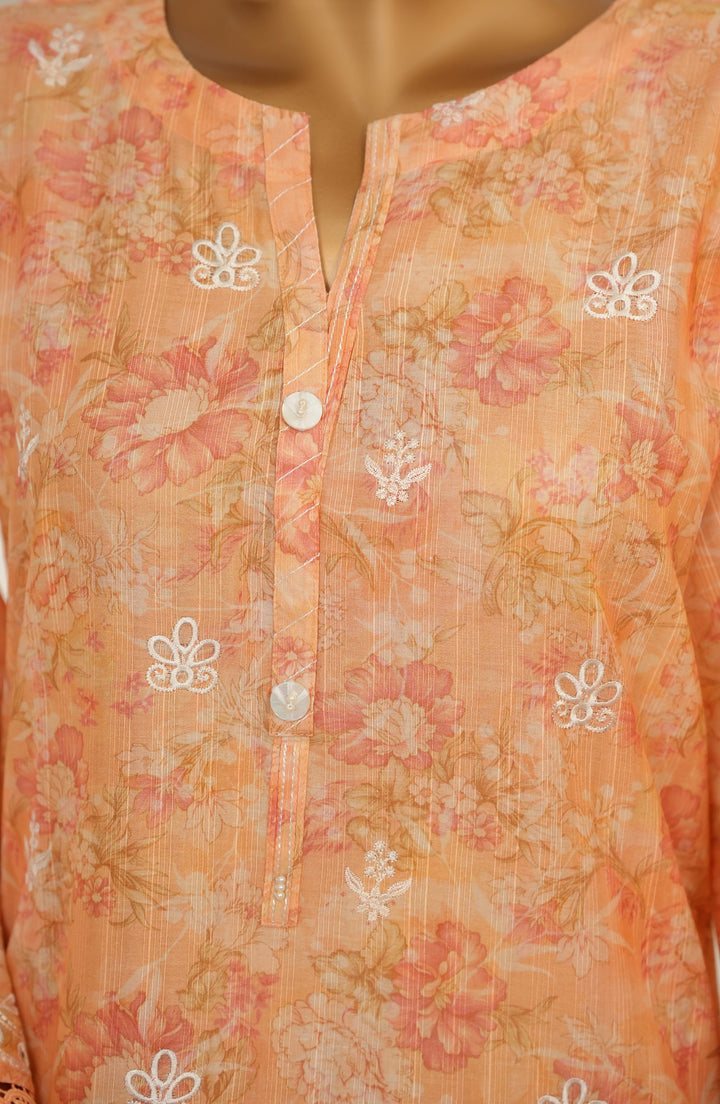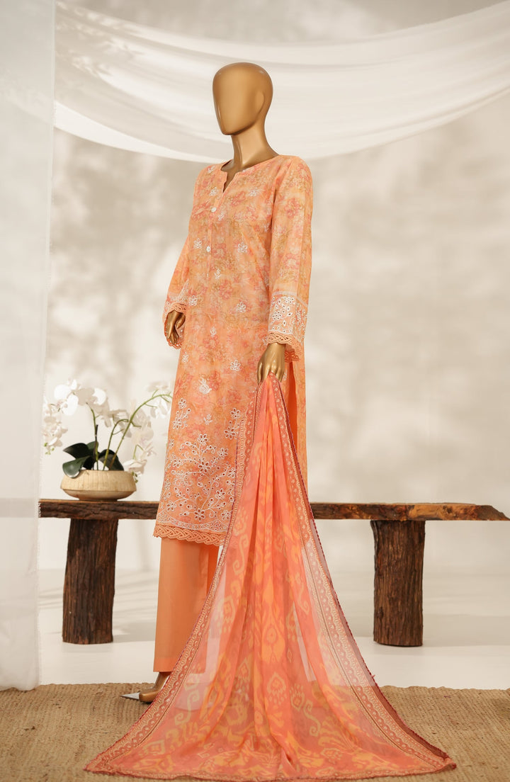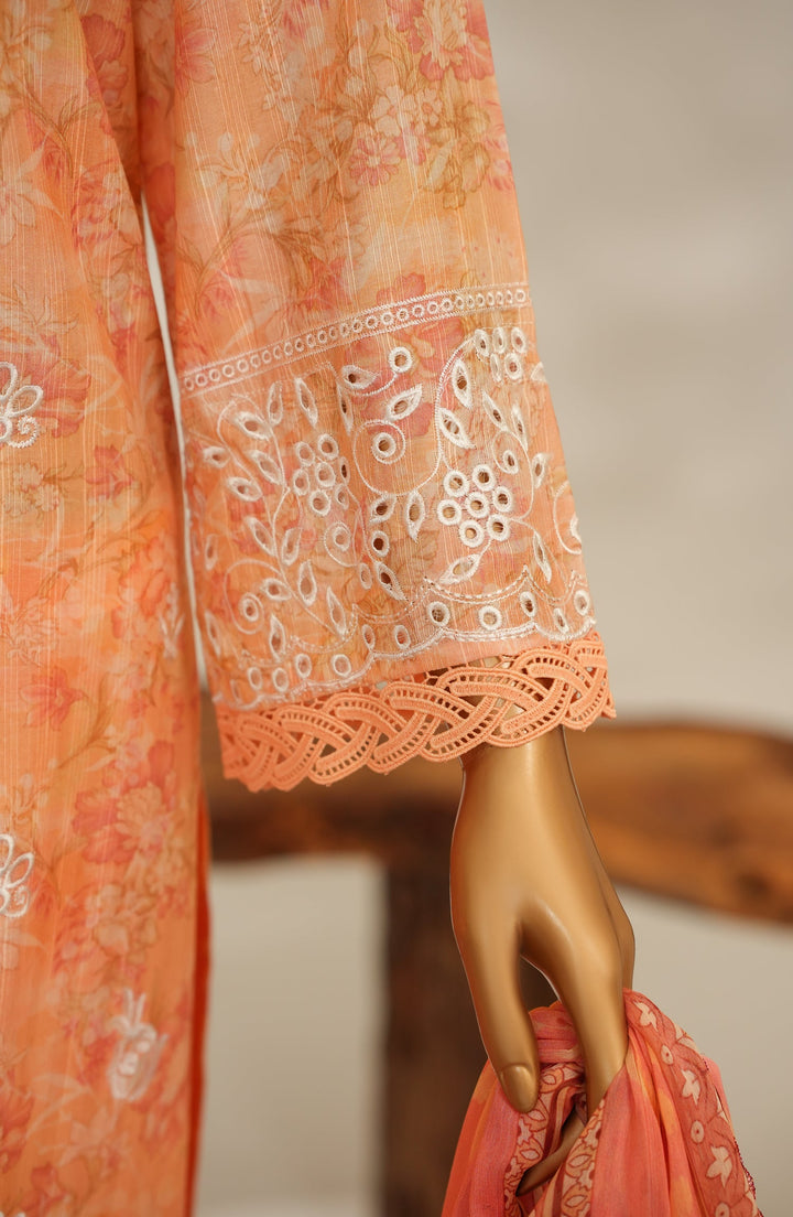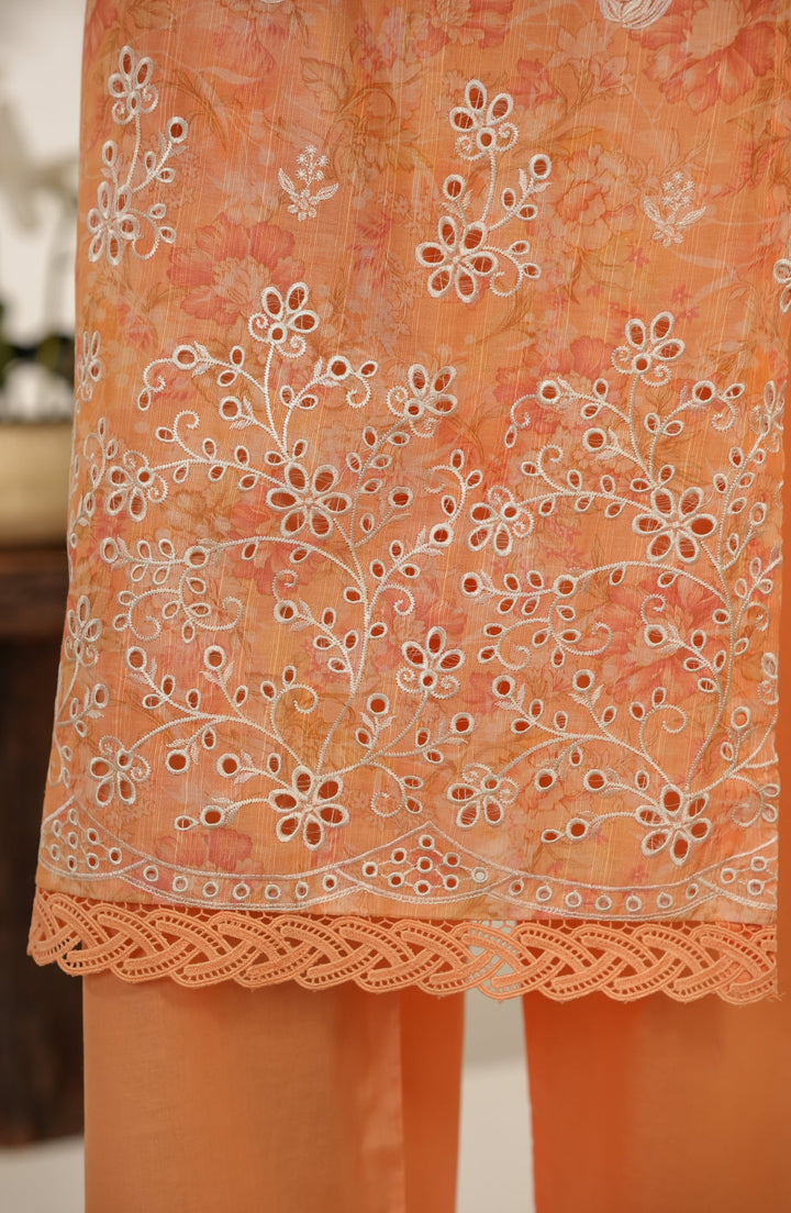 Nayab by Amna Khadija Printkari Embroidered Doria Fine Cotton Stitched 3 Piece Suit - NPED-07 - AM25NYB2 - Orange - Summer Collection