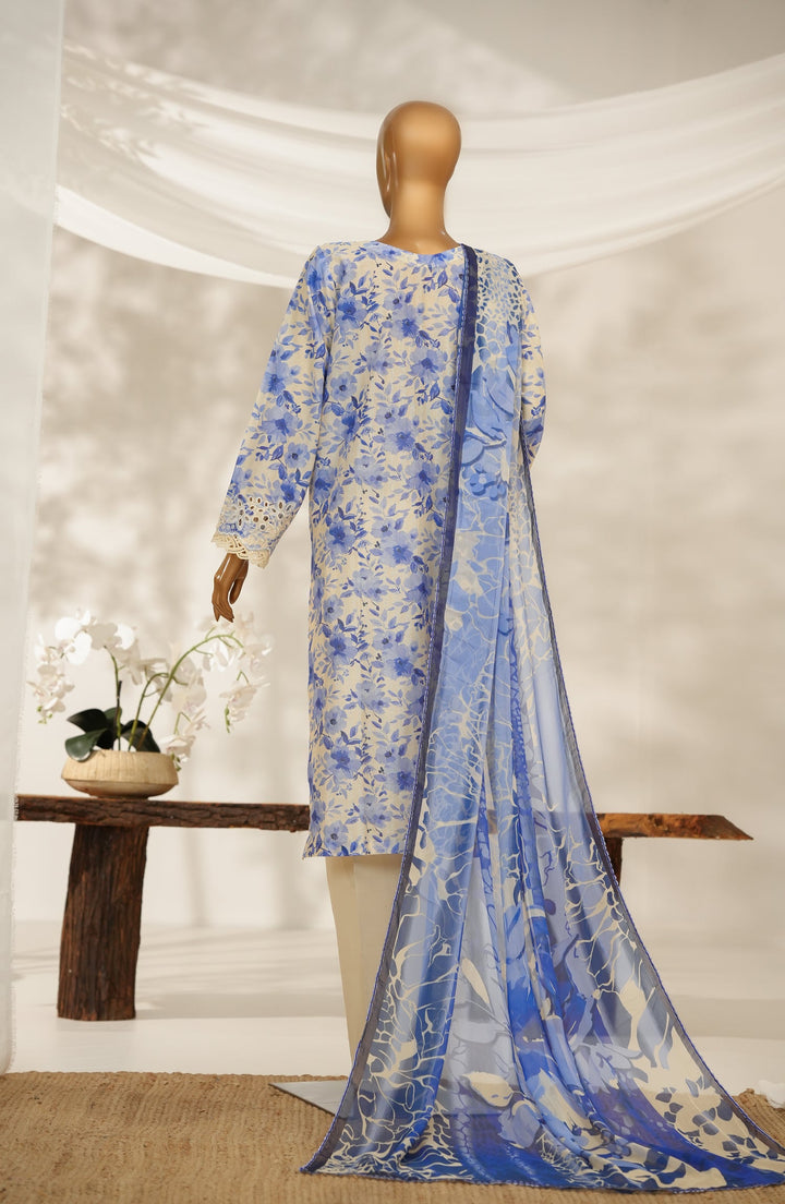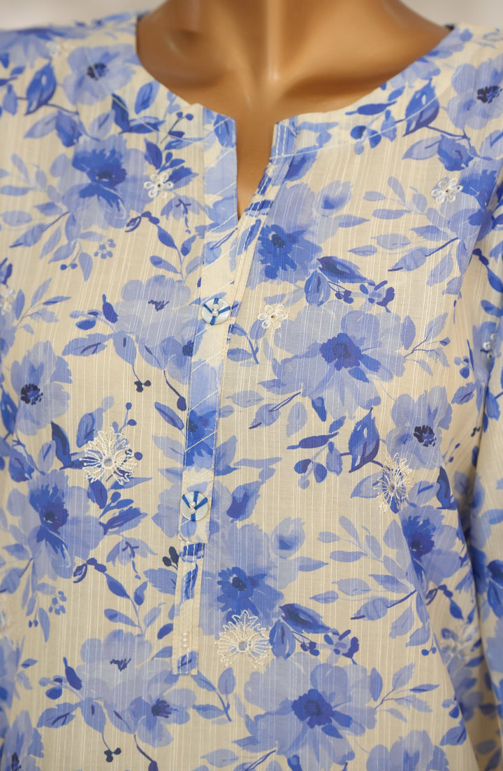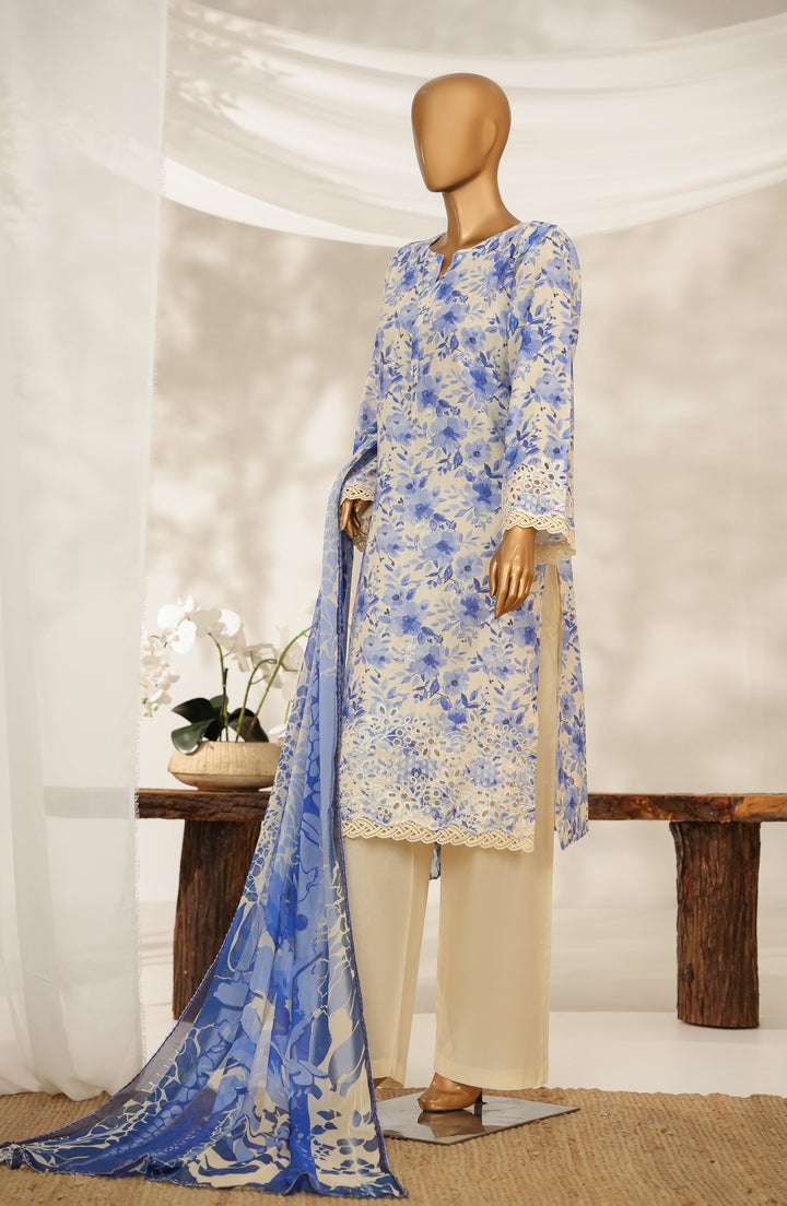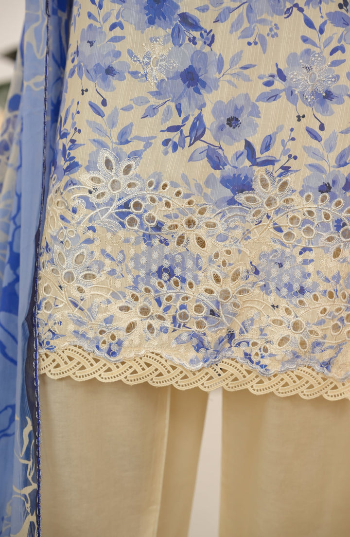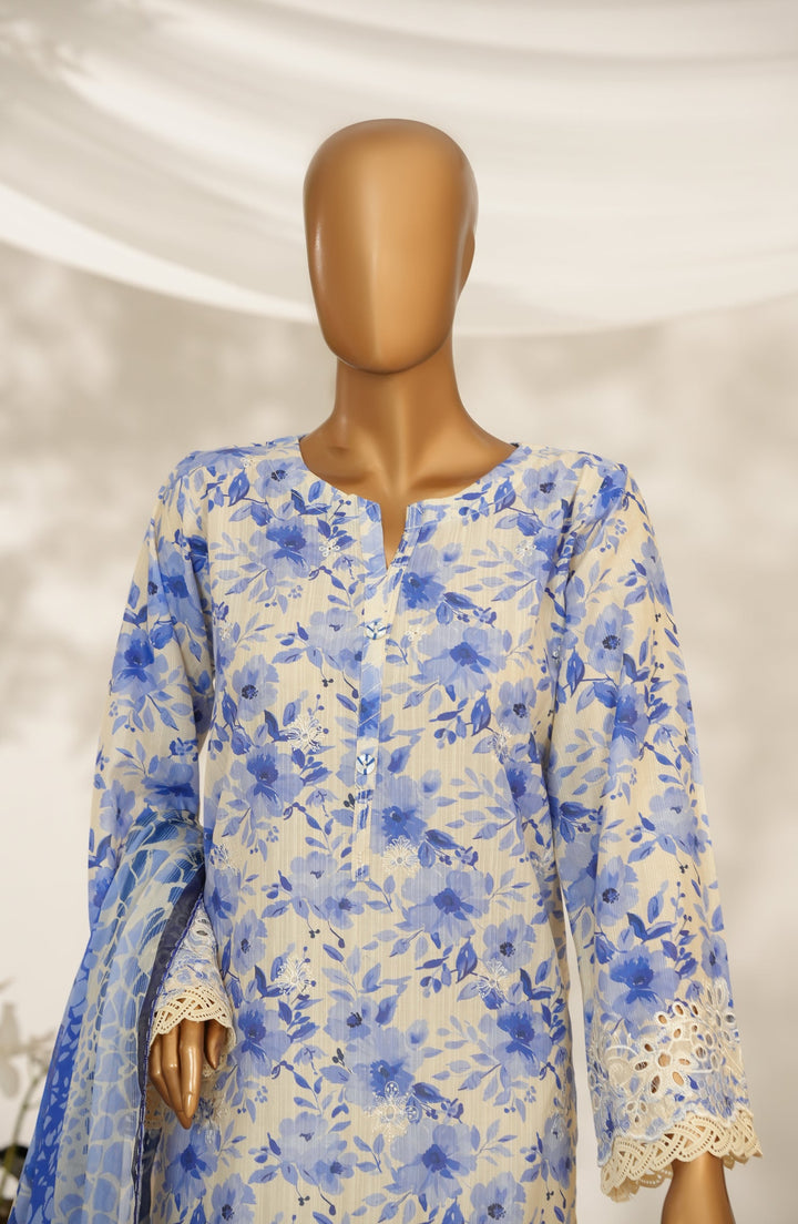 Nayab by Amna Khadija Printkari Embroidered Doria Fine Cotton Stitched 3 Piece Suit - NPED-08 - AM25NYB2 - Blue - Summer Collection
