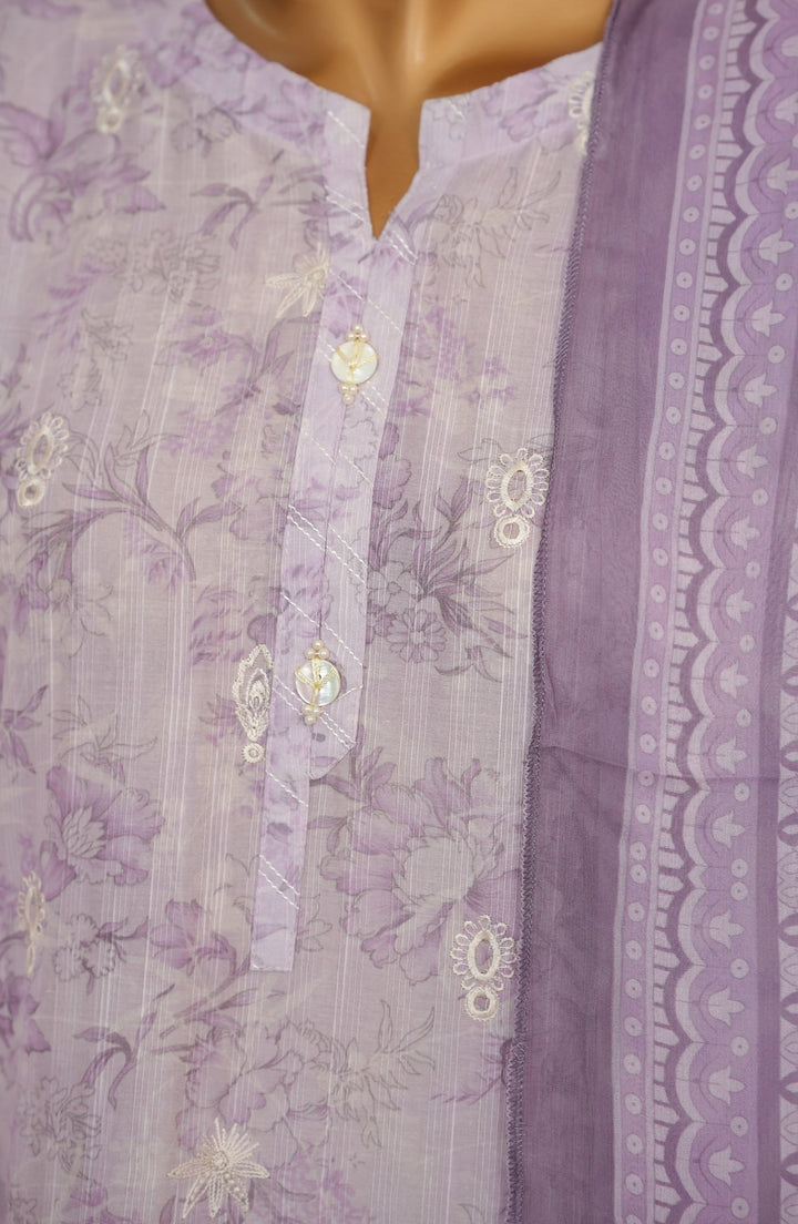 Nayab by Amna Khadija Printkari Embroidered Doria Fine Cotton Stitched 3 Piece Suit - NPED-09 - AM25NYB2 - Purple - Summer Collection