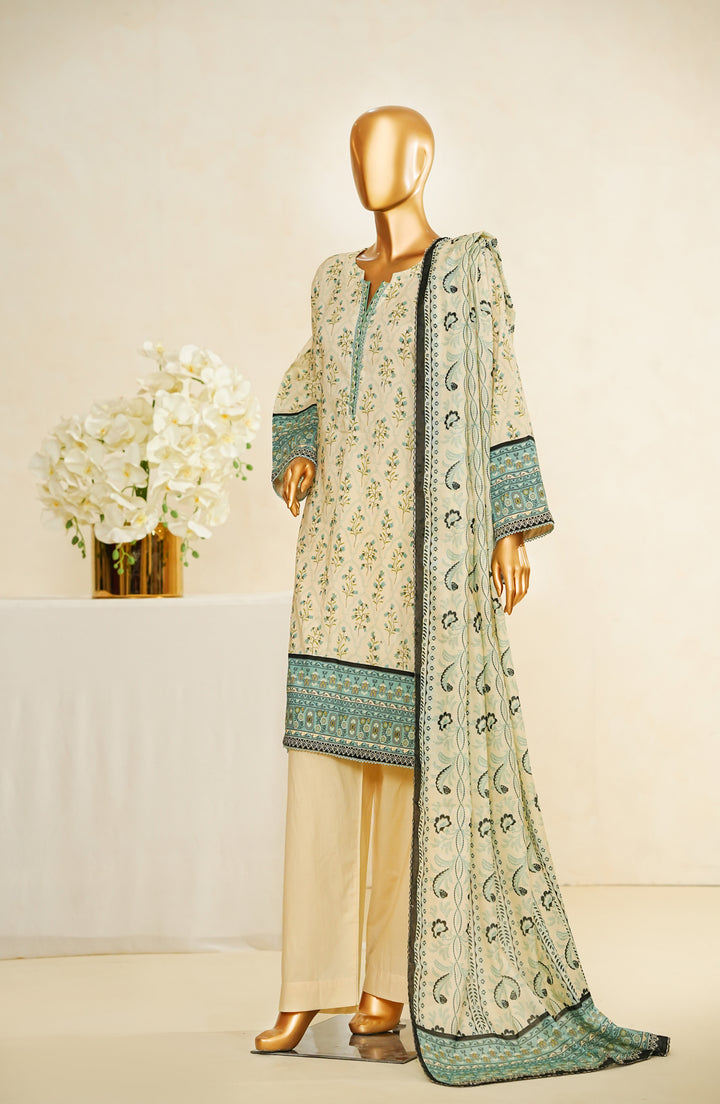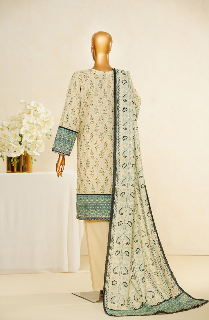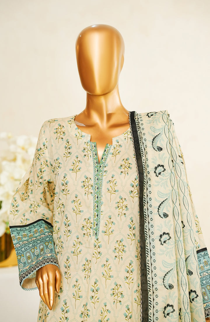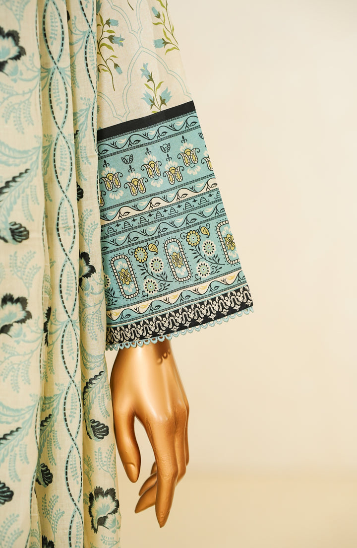 Stitched Digital Print Cotton Cambric 3-piece suit with embellishments