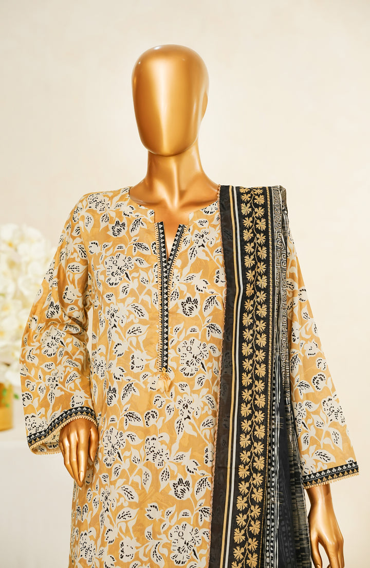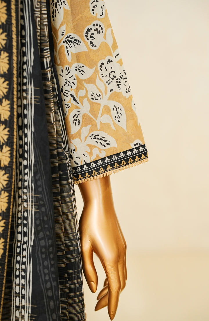 Stitched Digital Print Cotton Cambric 3-piece suit with embellishments