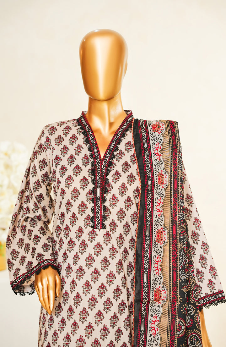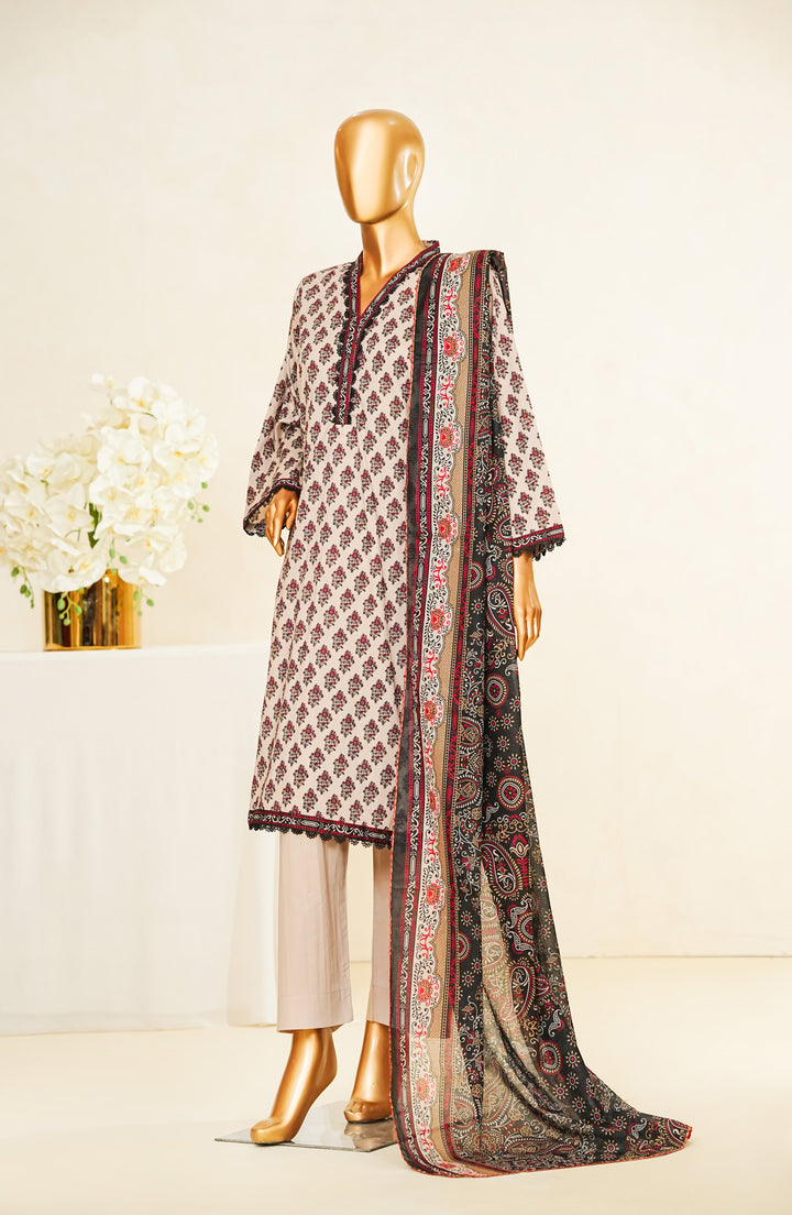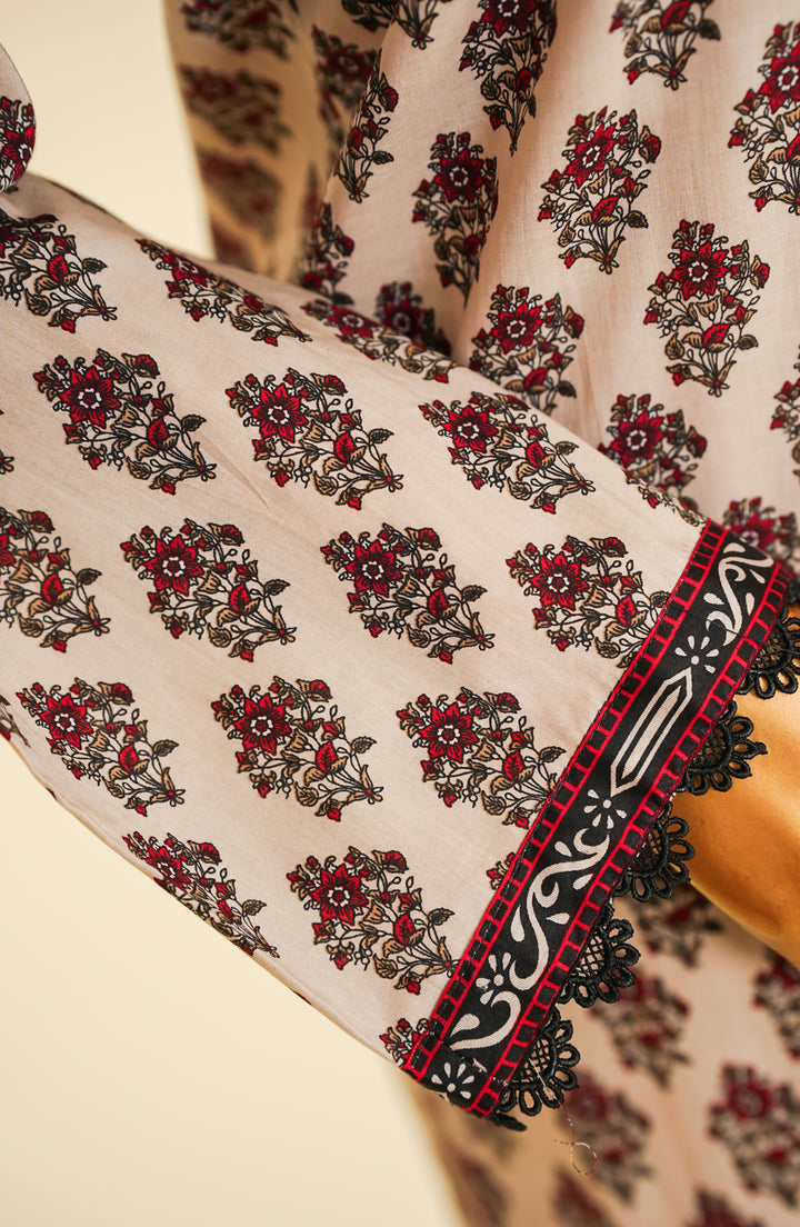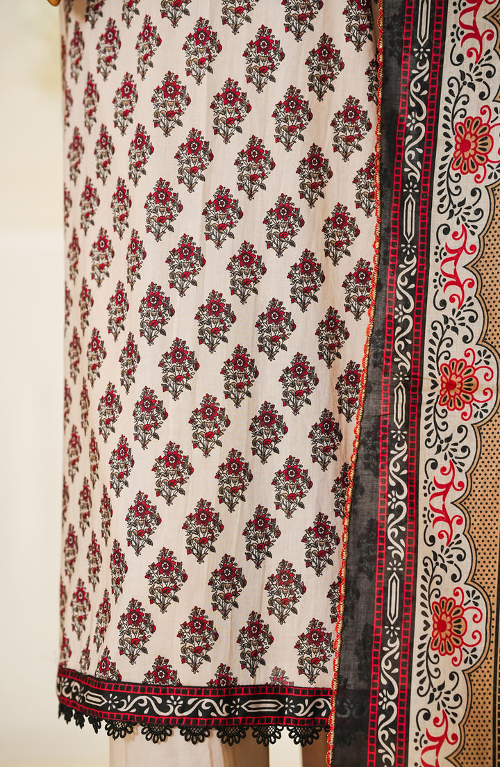 Stitched Digital Print Cotton Cambric 3-piece suit with embellishments