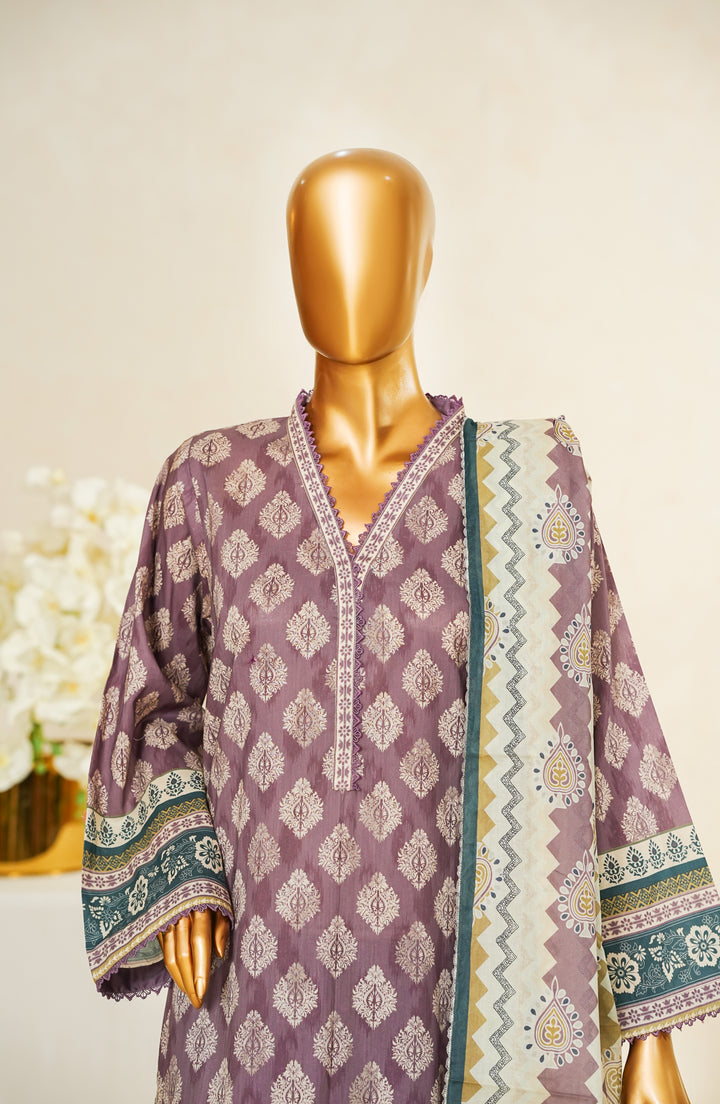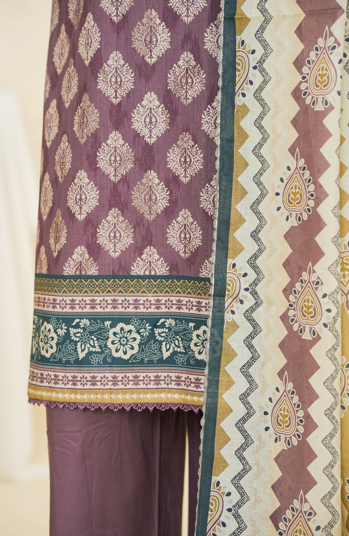 Nissa Floral by Amna Khadija Printed Cotton Cambric Stitched 3 Piece Suit - NF- 12 - Purple - Casual Collection