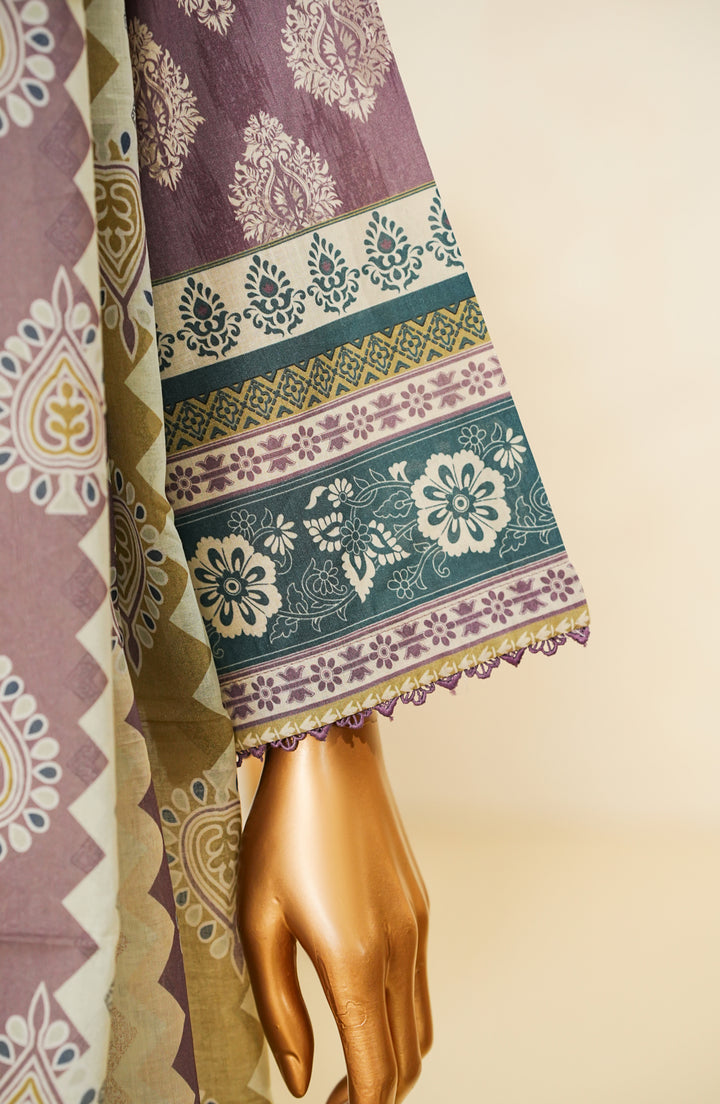 Stitched Digital Print Cotton Cambric 3-piece suit with embellishments