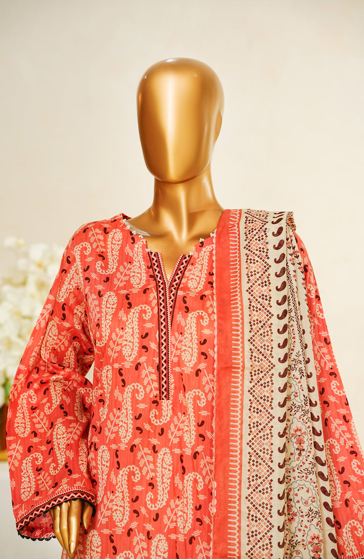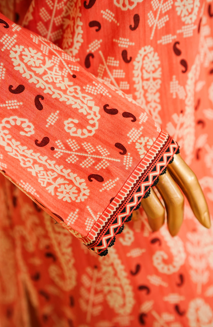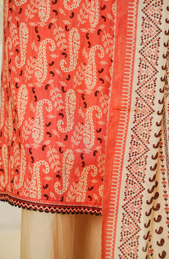 Stitched Digital Print Cotton Cambric 3-piece suit with embellishments