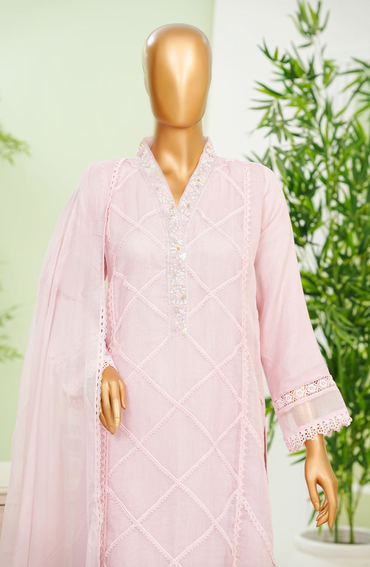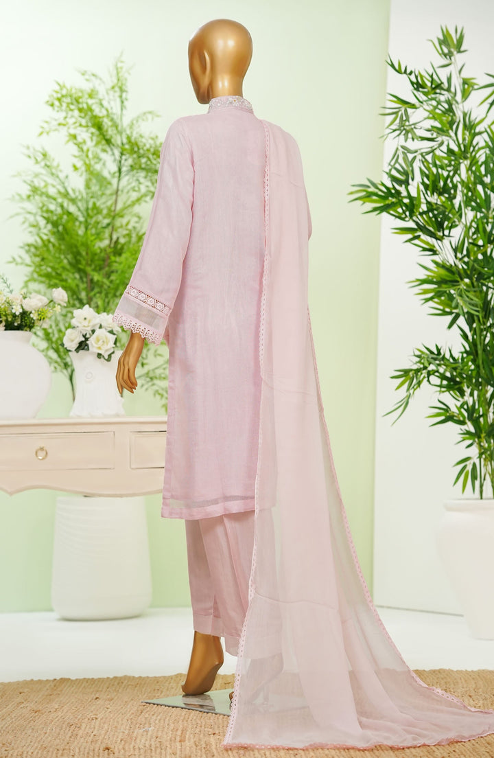 Nyra by Amna Khadija Embroidered Khaddi Net Stitched 3 Piece Suit - AM25NRA - NLF-01-B - Pink - Festive Collection