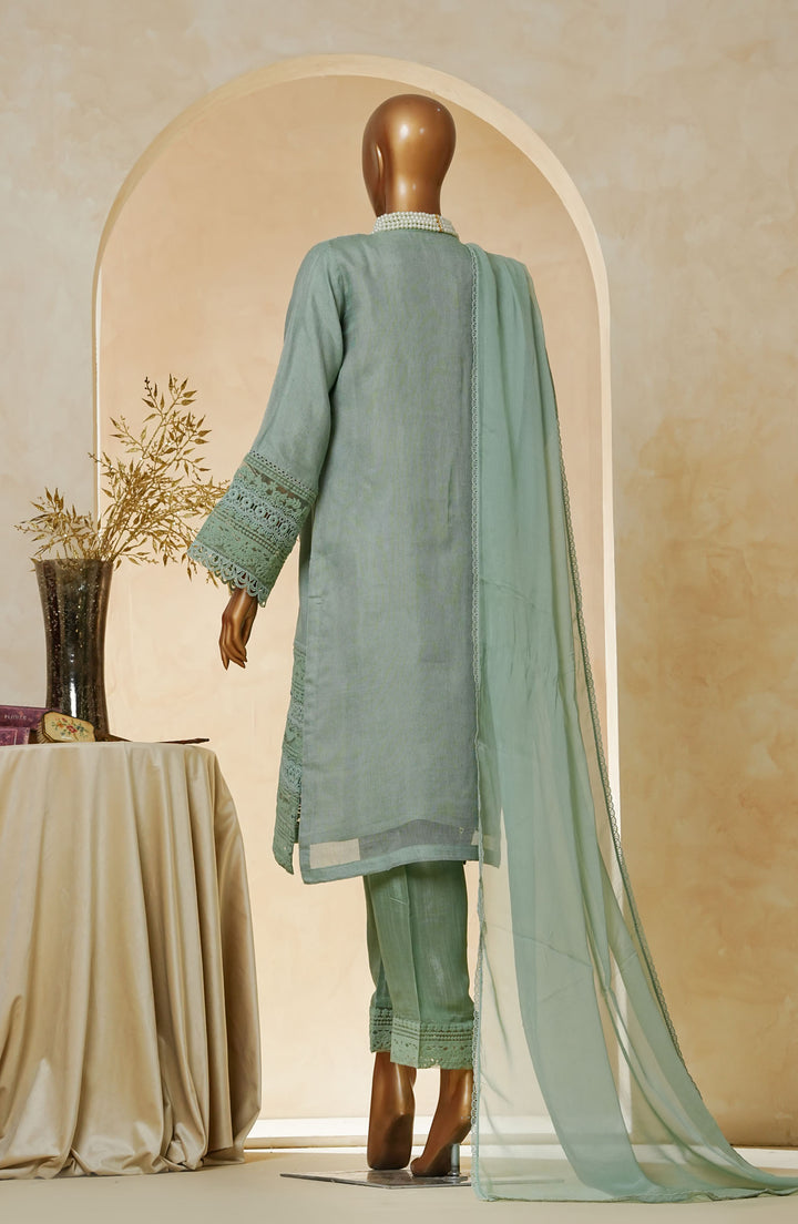 Nyra by Amna Khadija Embroidered Khaddi Net Stitched 3 Piece Suit - D - 01 - Green