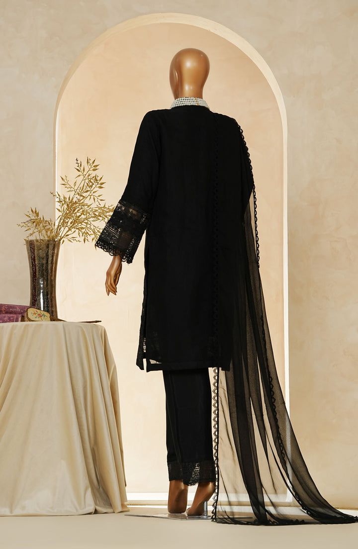 Nyra by Amna Khadija Embroidered Khaddi Net Stitched 3 Piece Suit - D - 04 - Black