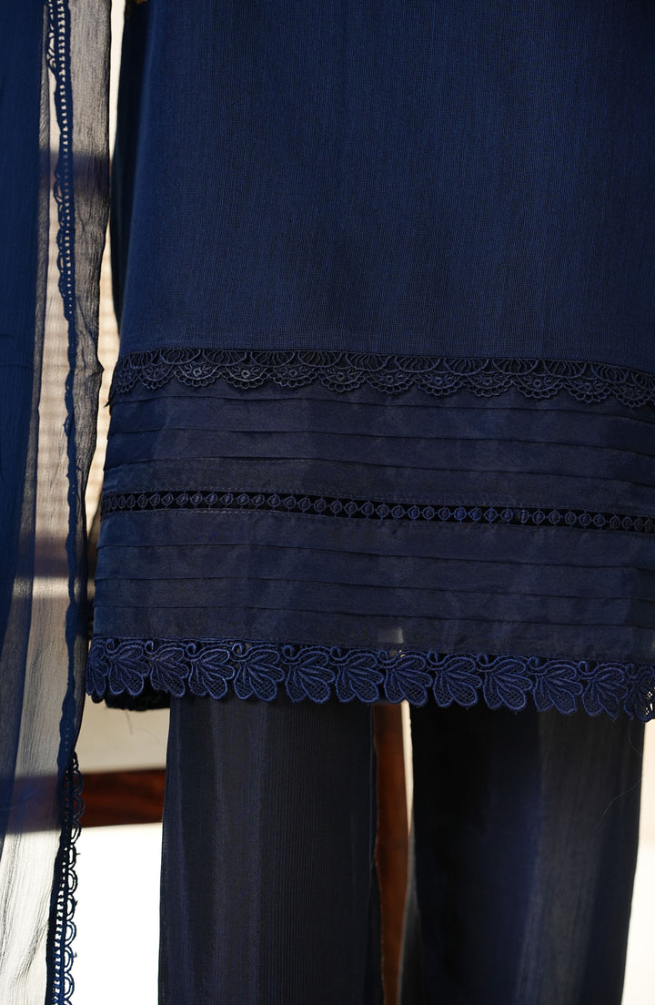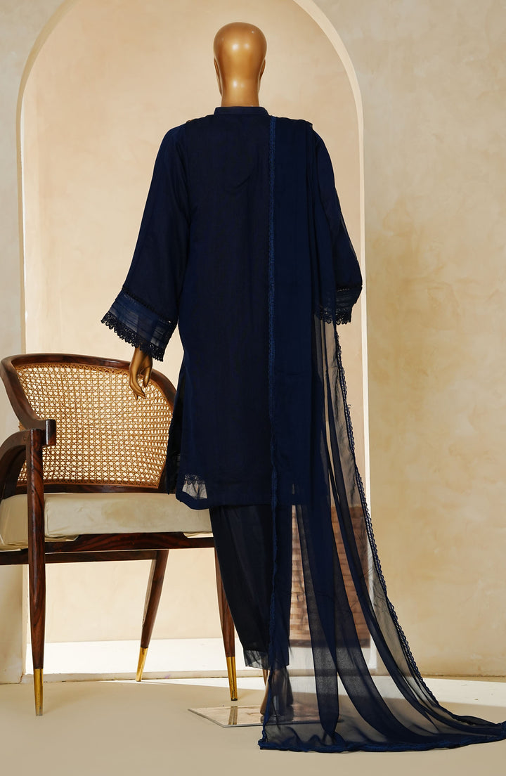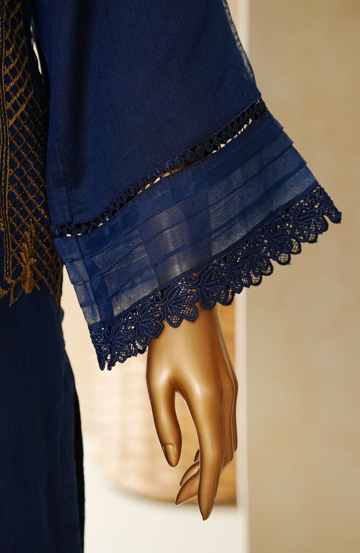 Nyra by Amna Khadija Embroidered Khaddi Net Stitched 3 Piece Suit - D - 07 - Blue