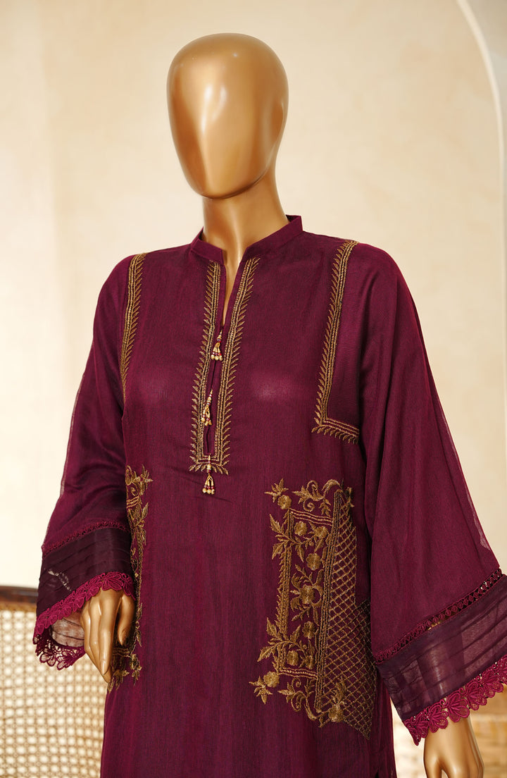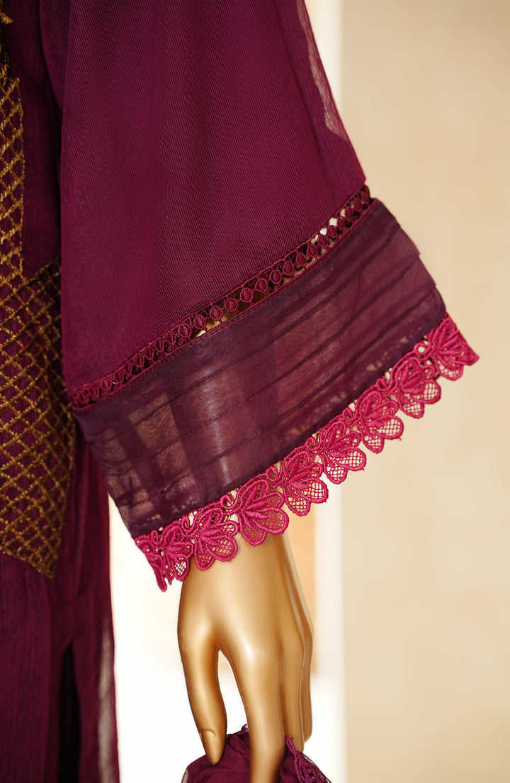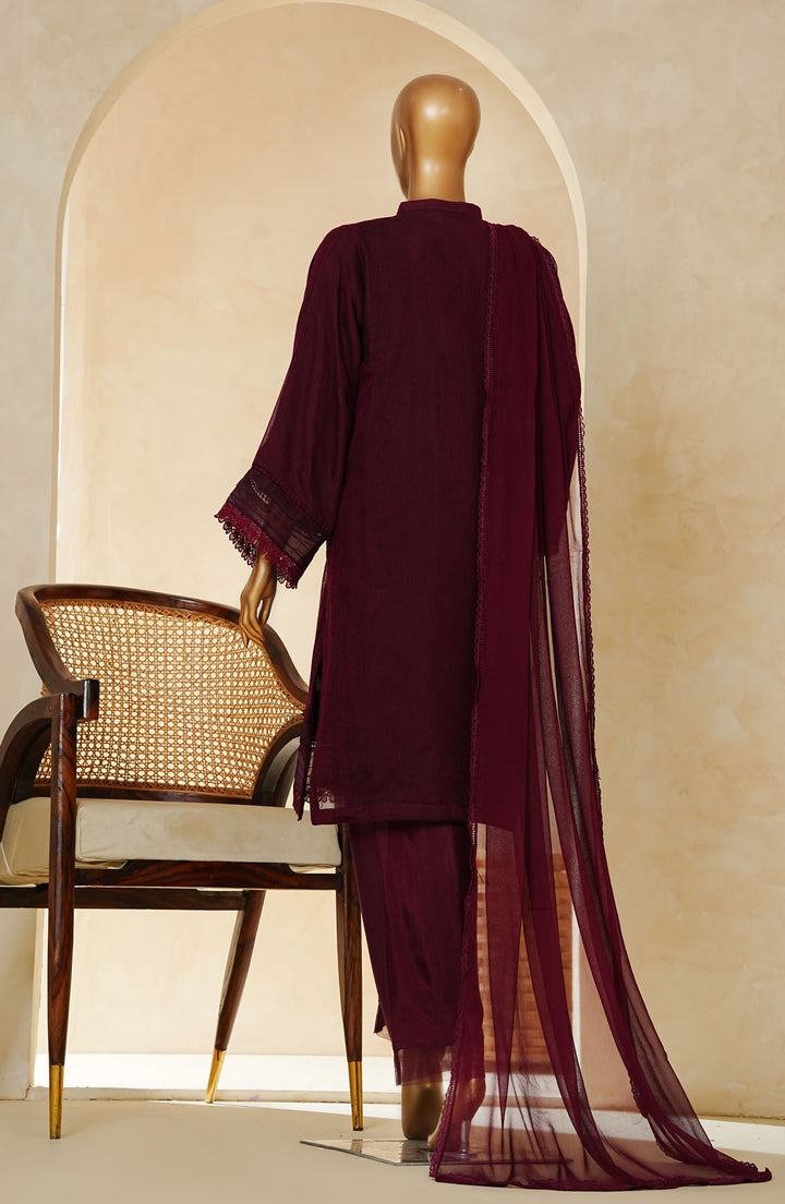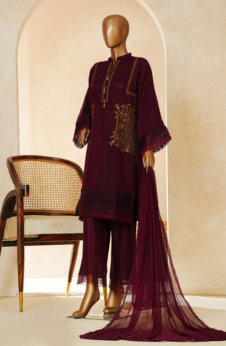 Nyra by Amna Khadija Embroidered Khaddi Net Stitched 3 Piece Suit - D - 08 - Maroon