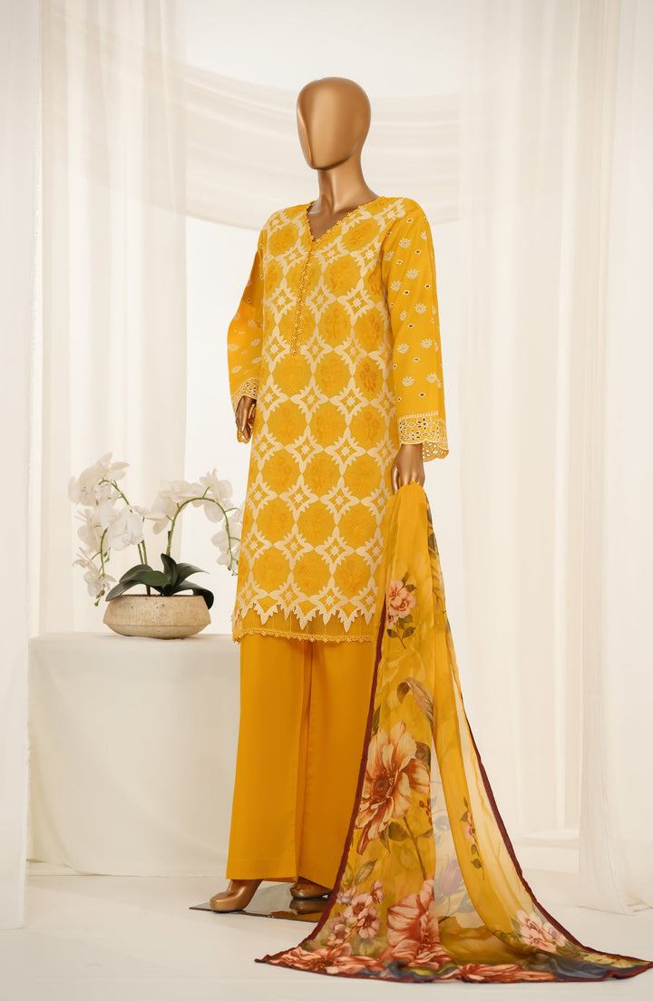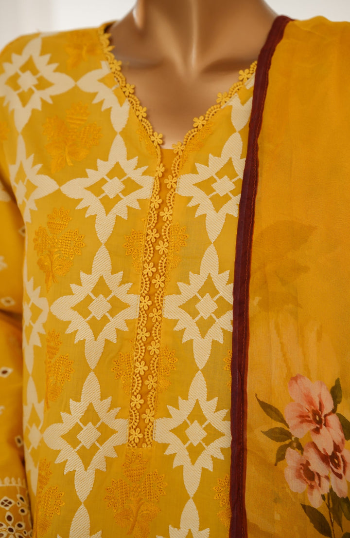 Onaya by Amna Khadija Embroidered Cotton Stitched 3 Piece Suit - Design-05 - AM25ONYA - Mustard - Luxury Collection