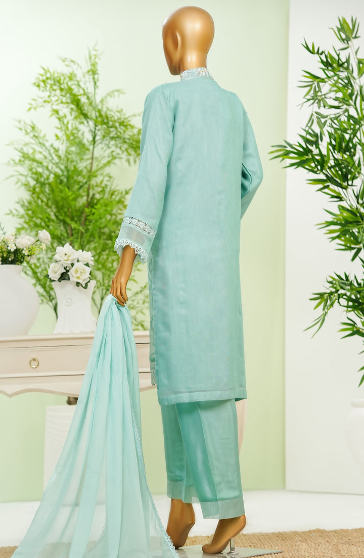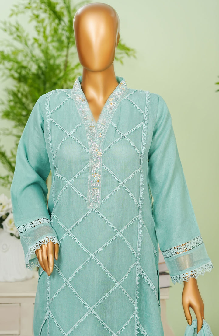Nyra by Amna Khadija Embroidered Khaddi Net Stitched 3 Piece Suit D - 10 - Blue