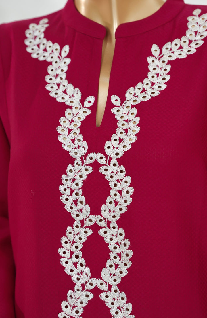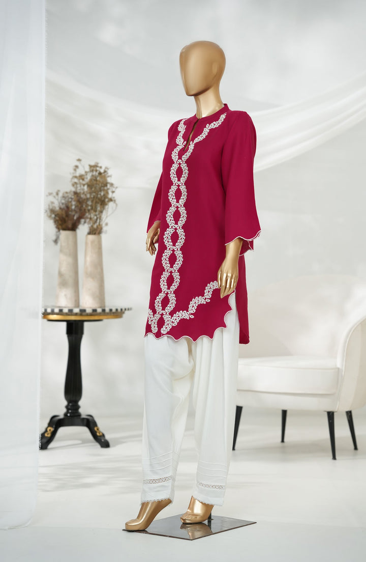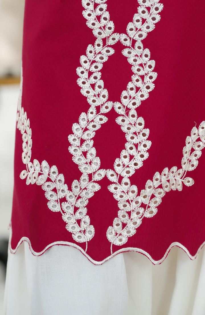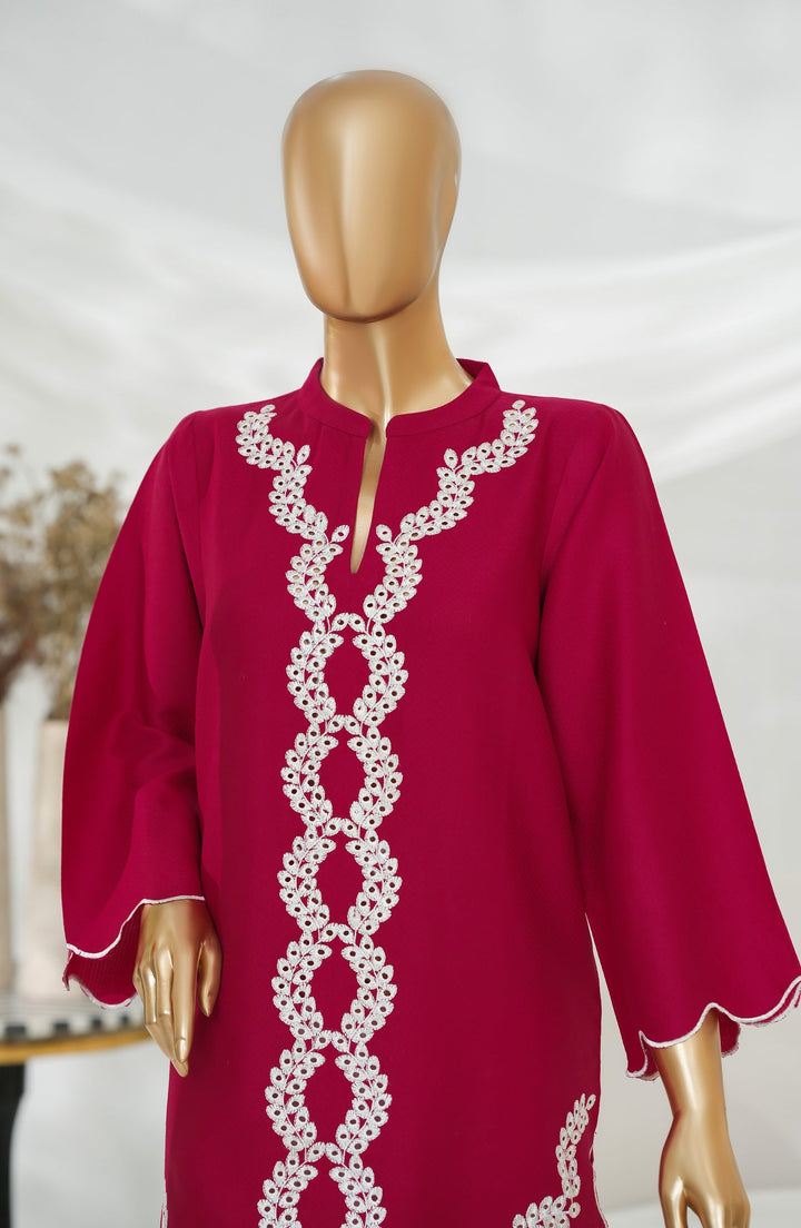 Passu by Amna Khadija Embroidered Fancy Jacquard Stitched Top - PET-03 - AM25PSU - Red - Casual Collection