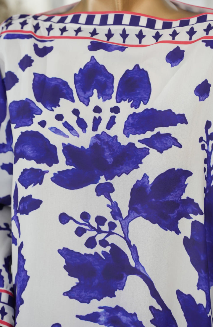 Digital print poly swiss cambric long shirt with embellishments