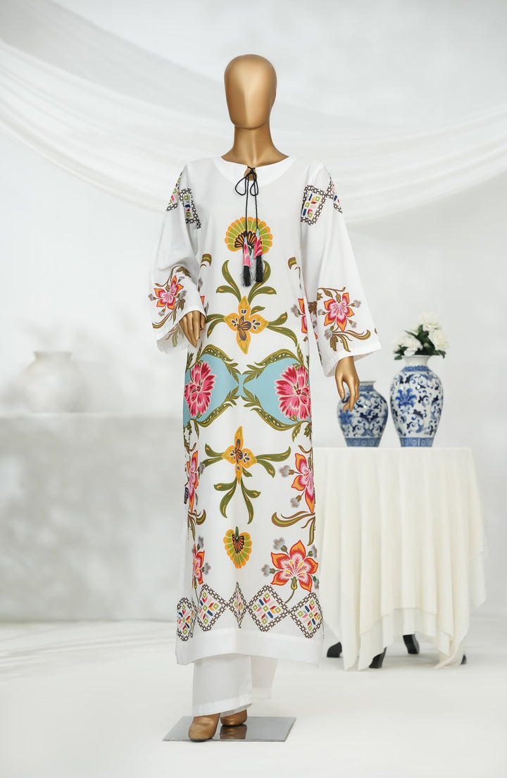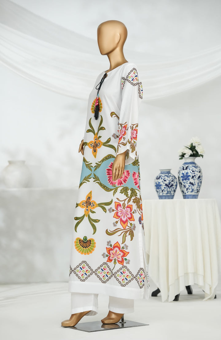Rhythm by Amna Khadija Digital Printed Poly Swiss Cambric Stitched 2 Piece Suit - AKR-03 - AM25RTHM - White - Summer Collection