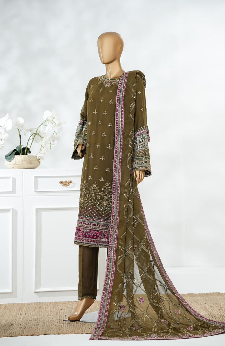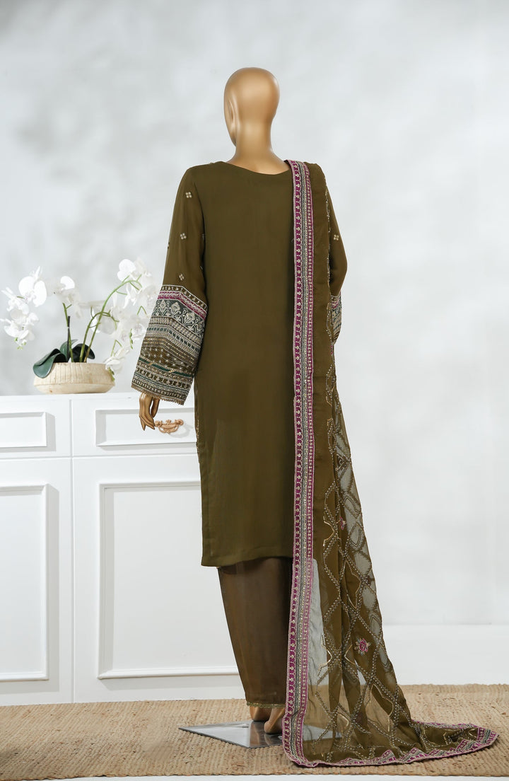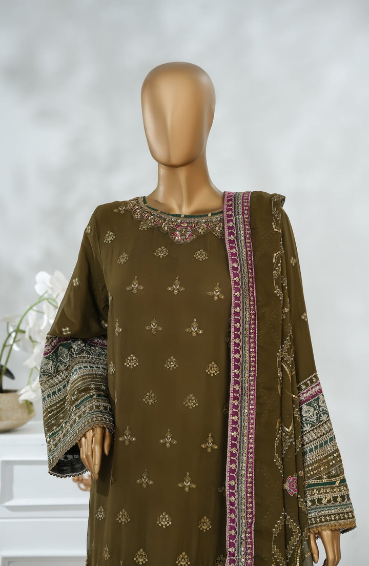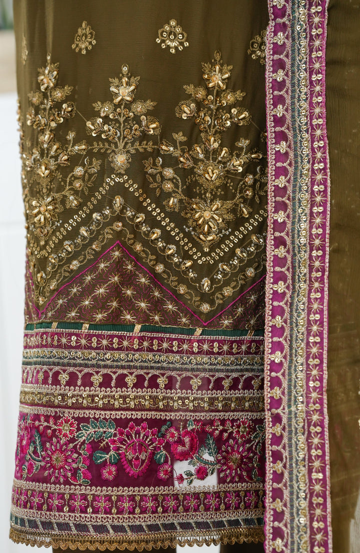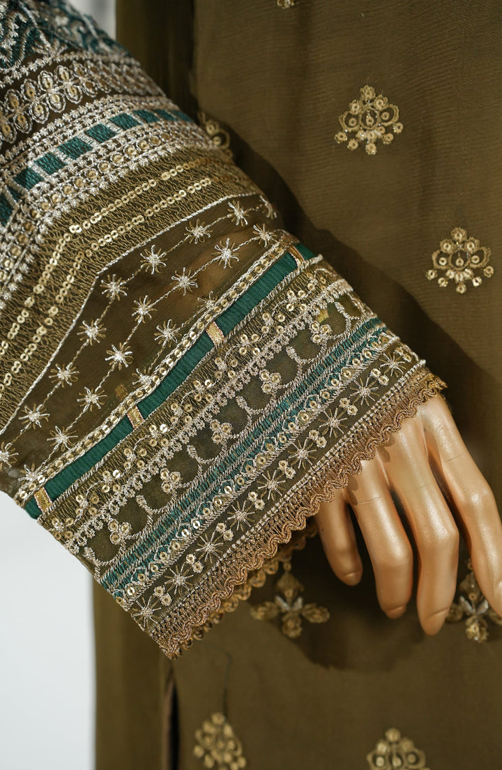 Sajni by Amna Khadija Luxury Embroidered Chiffon Stitched 3 Piece Suit - SLCP-01 - AM25SJNI - Mehndi - Festive Collection