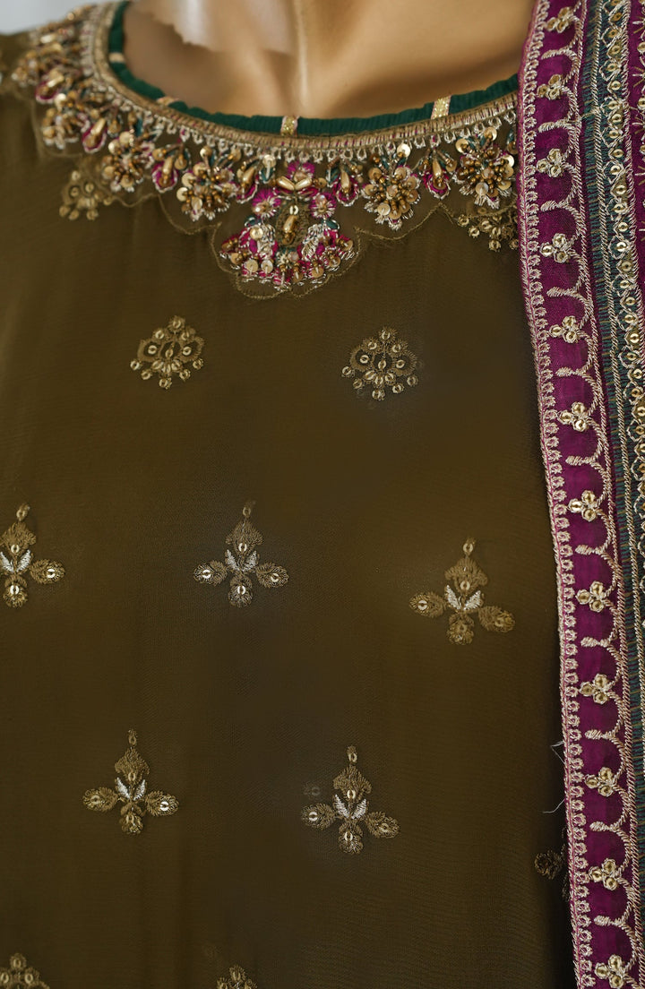 3 Piece Stitched Chiffon Luxury Embroidered Shirt With Hand Embellishments