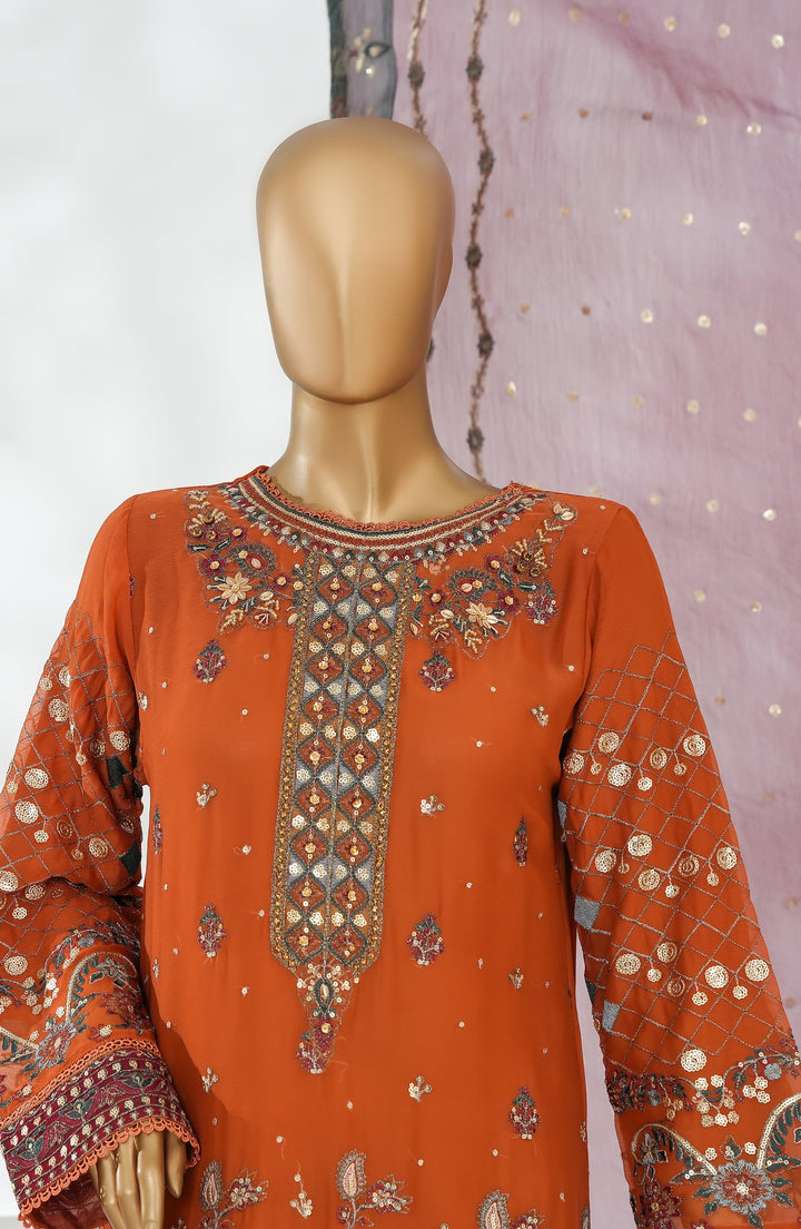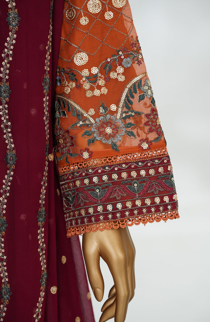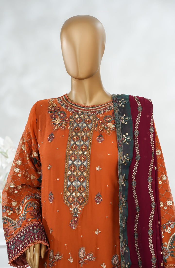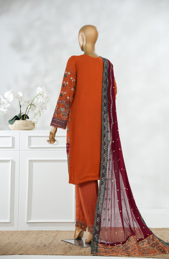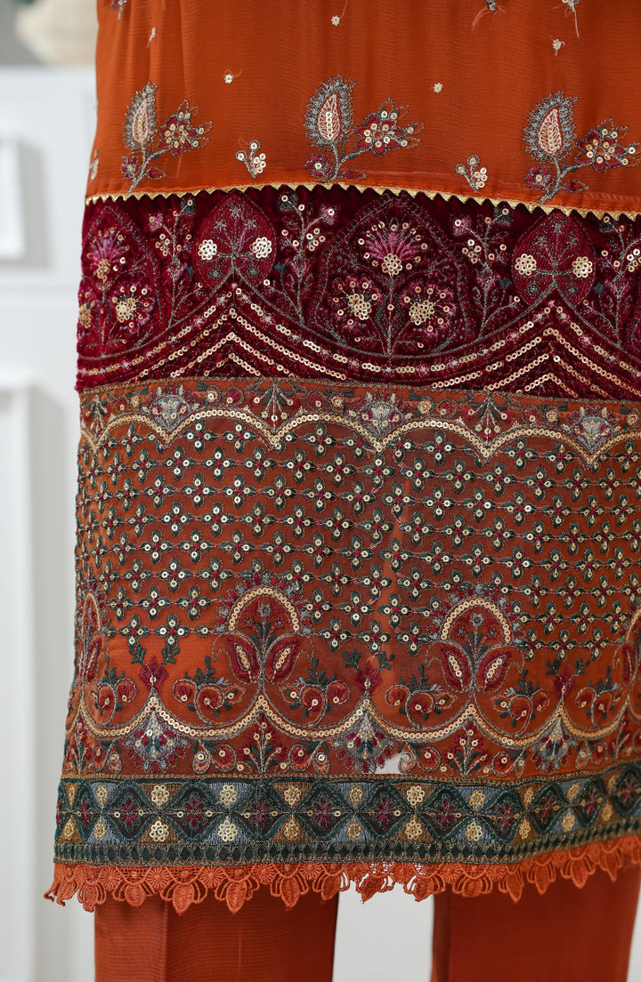 Sajni by Amna Khadija Luxury Embroidered Chiffon Stitched 3 Piece Suit - SLCP-03 - AM25SJNI - Orange - Festive Collection