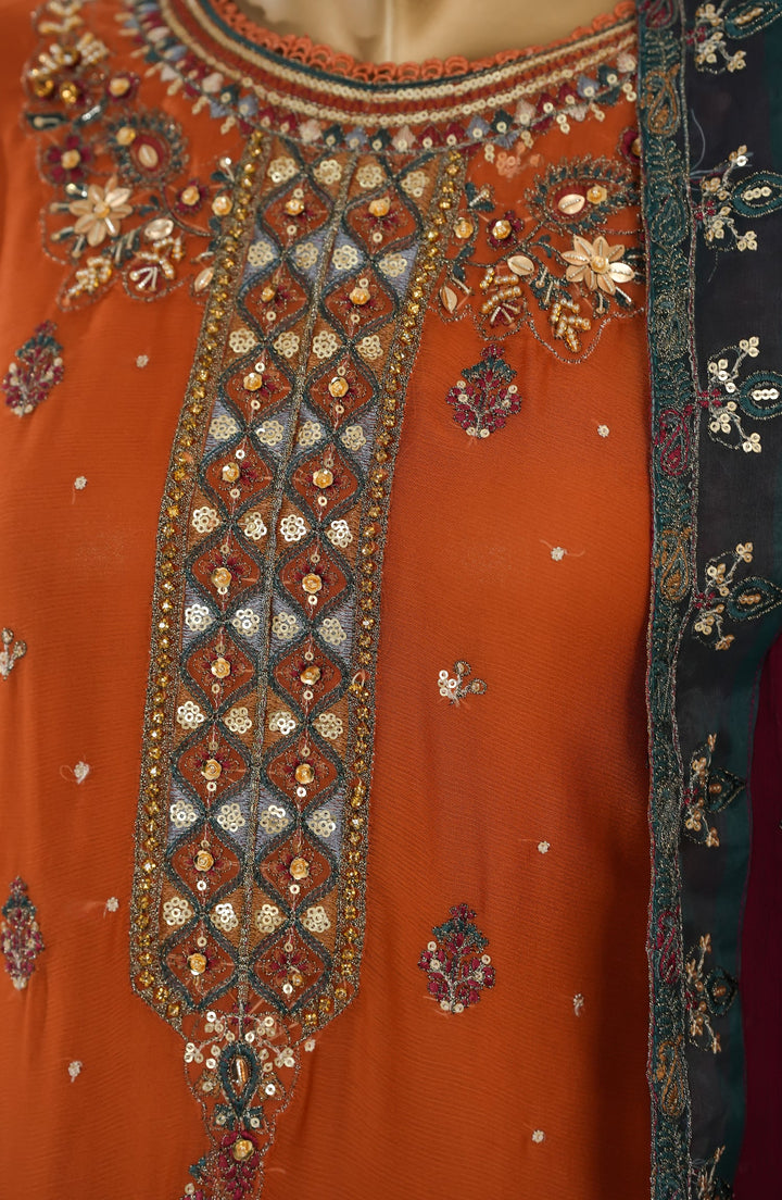 3 Piece Stitched Chiffon Luxury Embroidered Shirt With Hand Embellishments