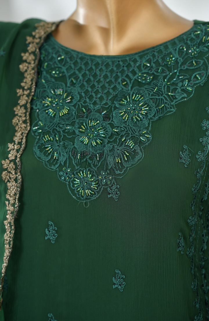 Sajni by Amna Khadija Luxury Embroidered Chiffon Stitched 3 Piece Suit - SLCP-04 - AM25SJNI - Green - Festive Collection