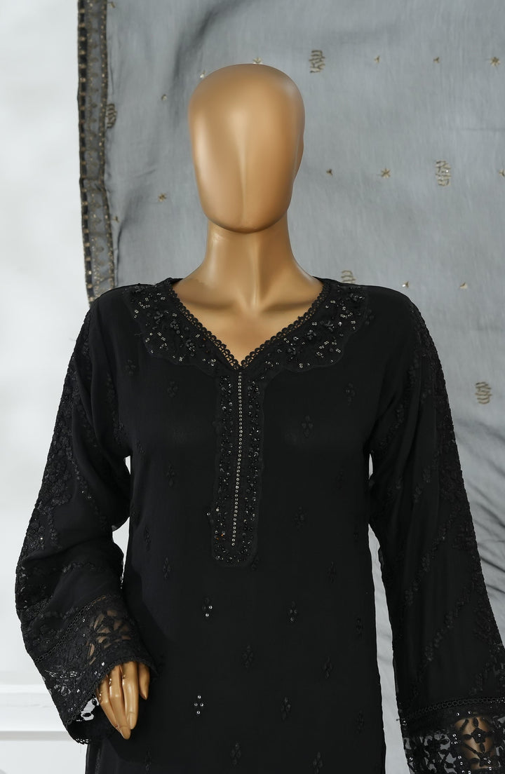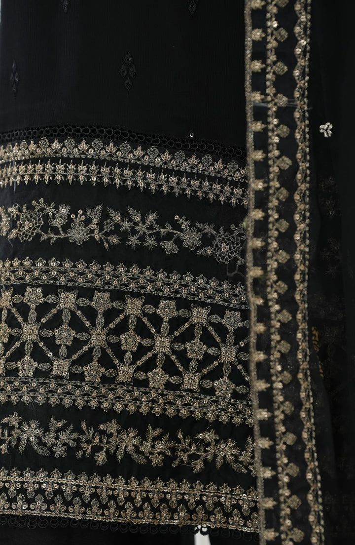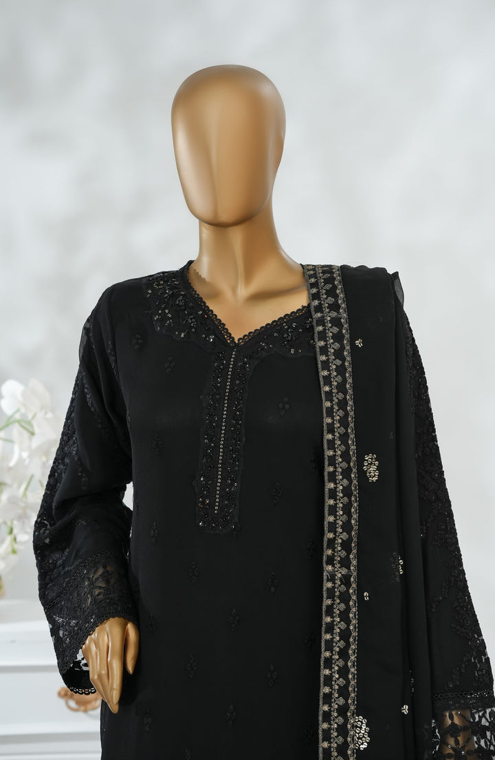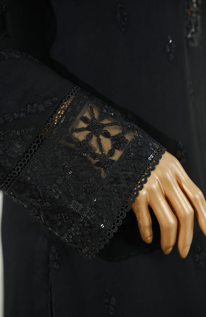 Sajni by Amna Khadija Luxury Embroidered Chiffon Stitched 3 Piece Suit - SLCP-05 - AM25SJNI - Black - Festive Collection
