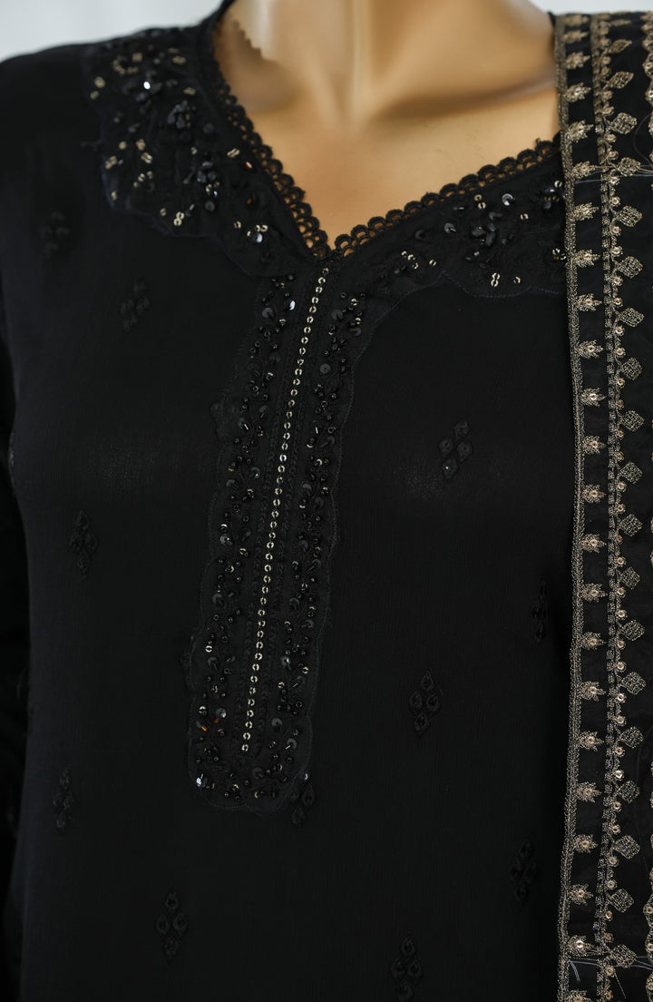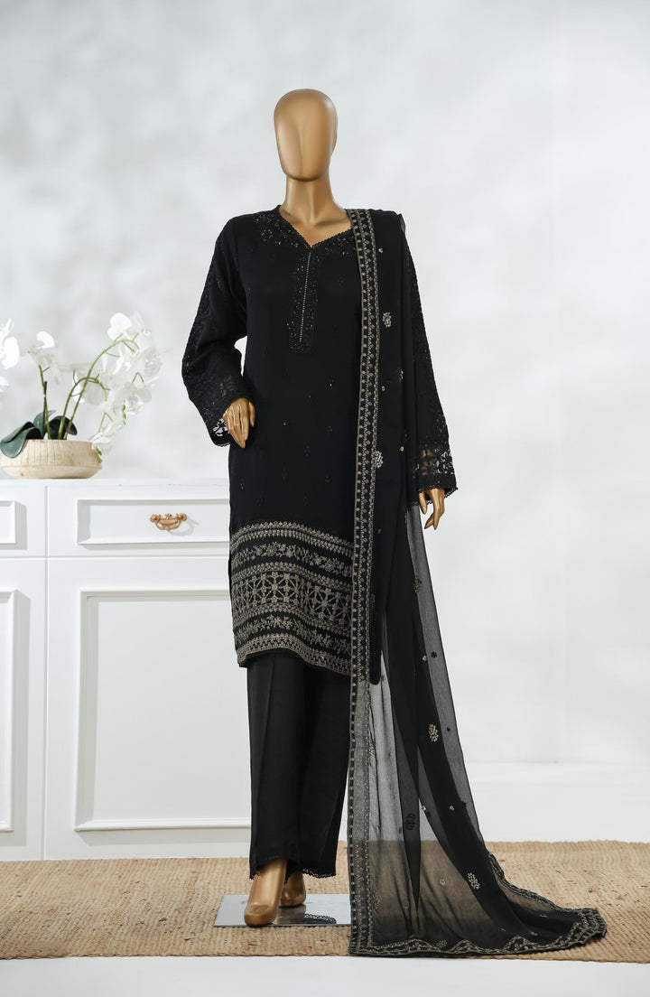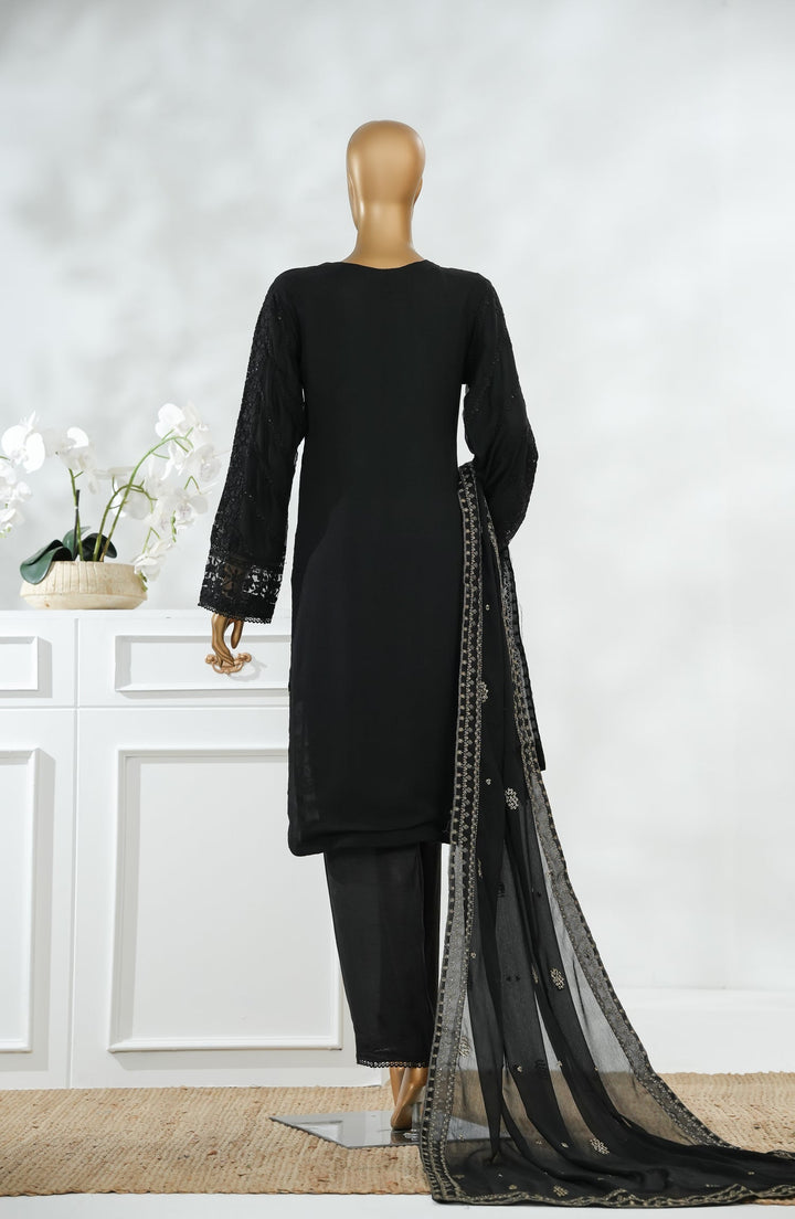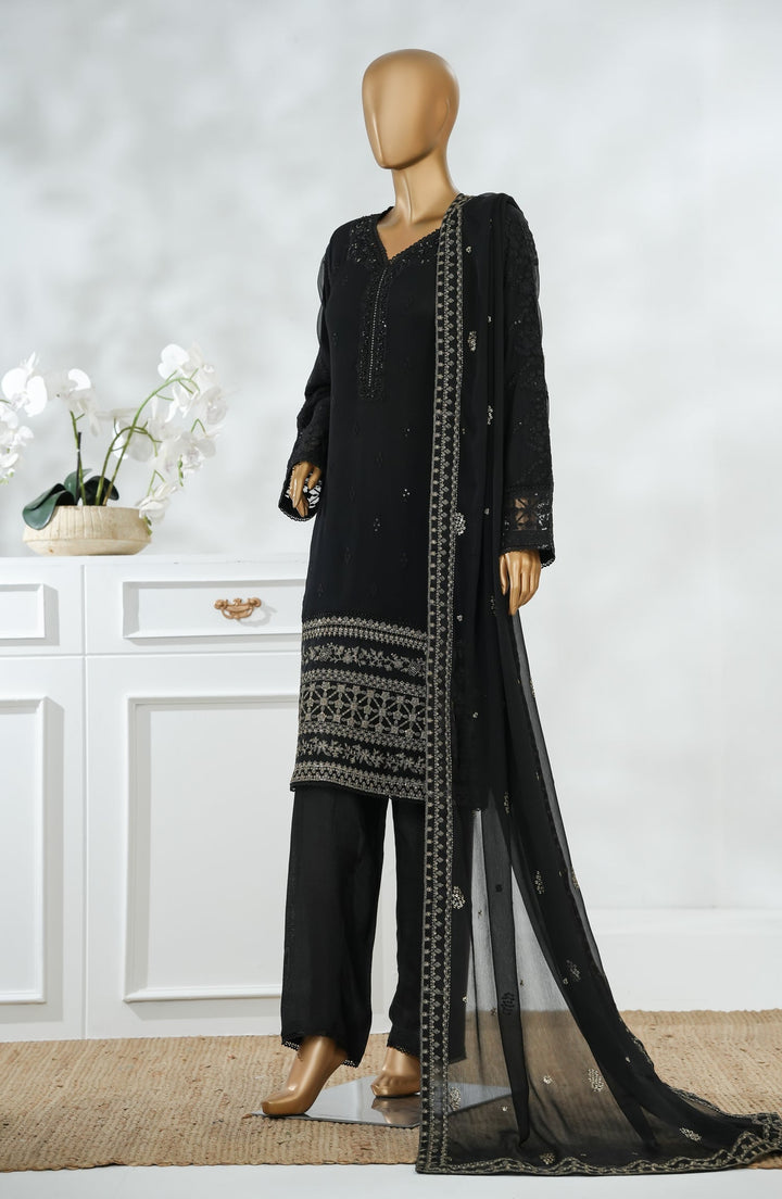 Sajni by Amna Khadija Luxury Embroidered Chiffon Stitched 3 Piece Suit - SLCP-05 - AM25SJNI - Black - Festive Collection