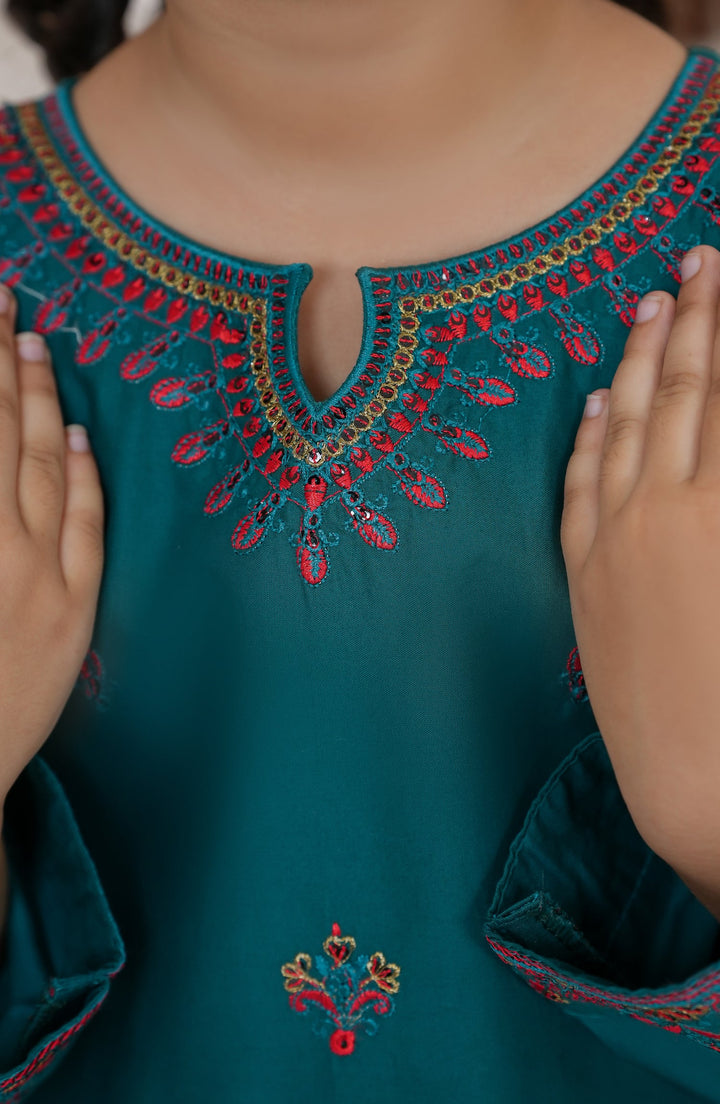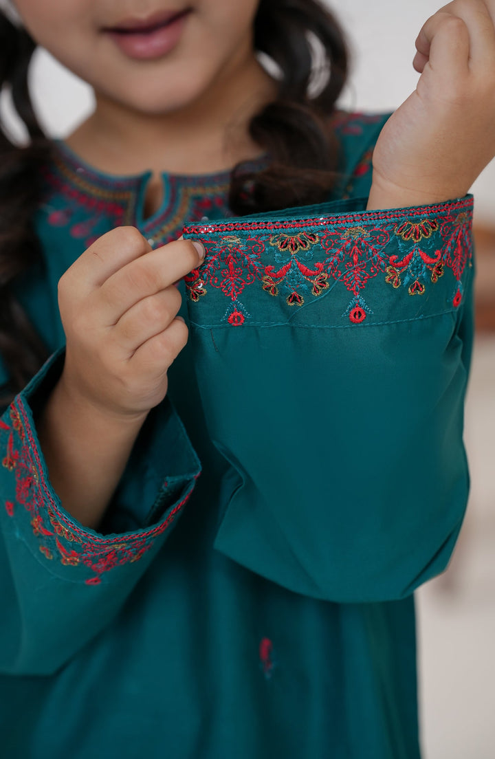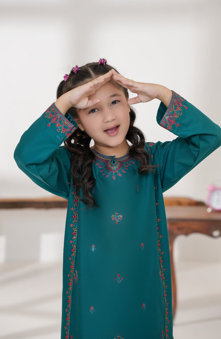 Souffle Guriya by Amna Khadija Embroidered Cotton Stitched 2 Piece Suit - SGF-01 - AM25SOFG - Green - Summer Girls Collection