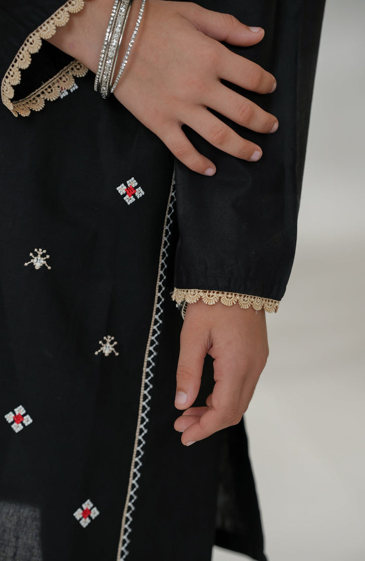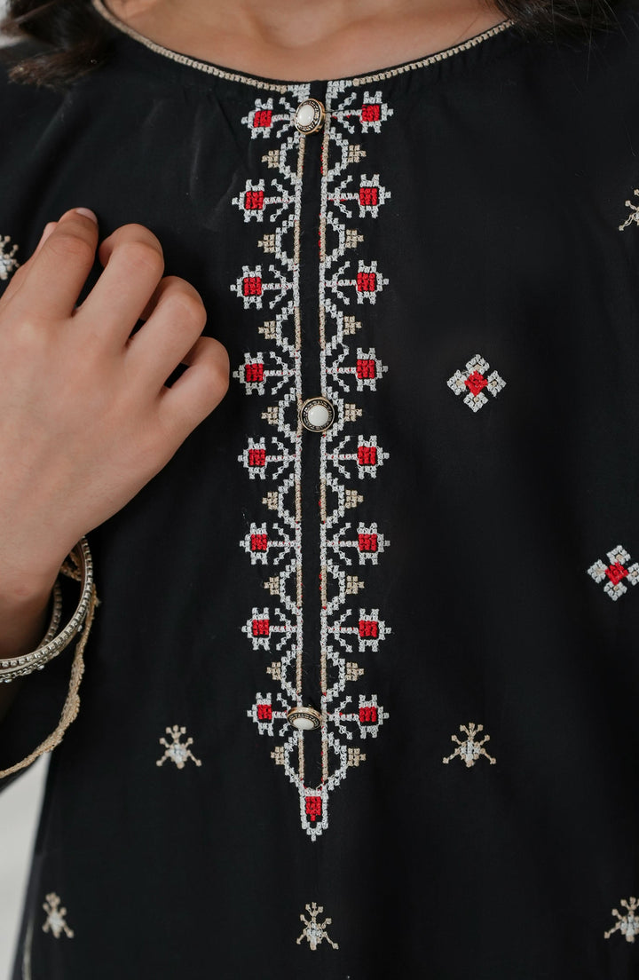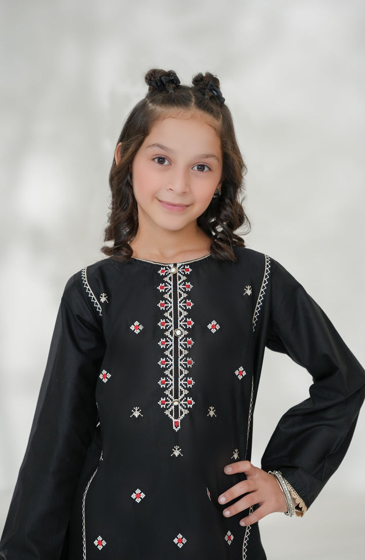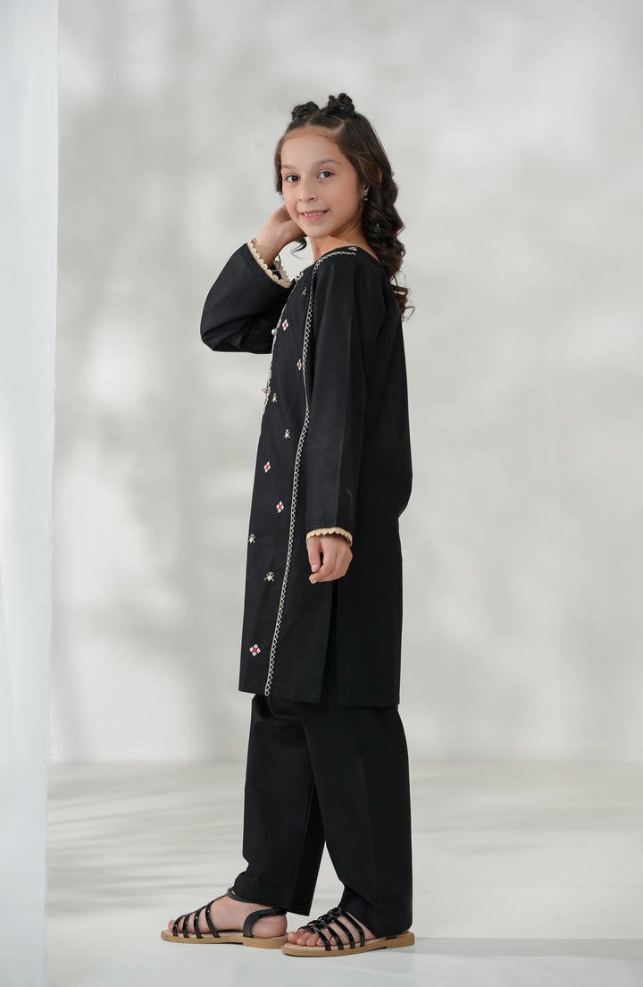 Souffle Guriya by Amna Khadija Embroidered Cotton Stitched 2 Piece Suit - SGF-07 - AM25SOFG - Black - Summer Girls Collection