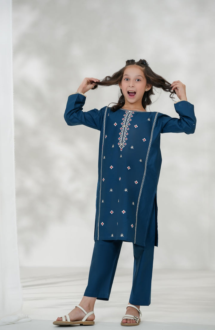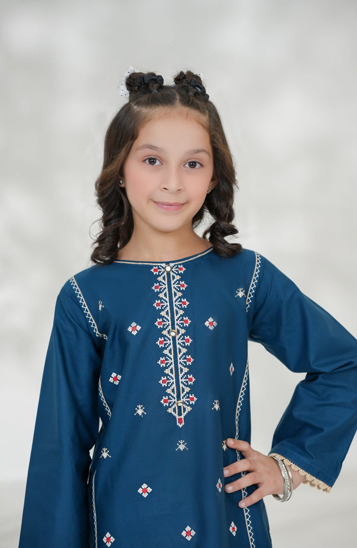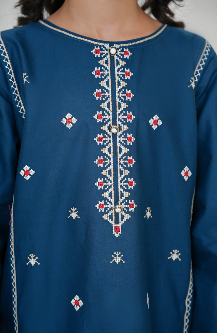 Souffle Guriya by Amna Khadija Embroidered Cotton Stitched 2 Piece Suit - SGF-11 - AM25SOFG - Blue - Summer Girls Collection