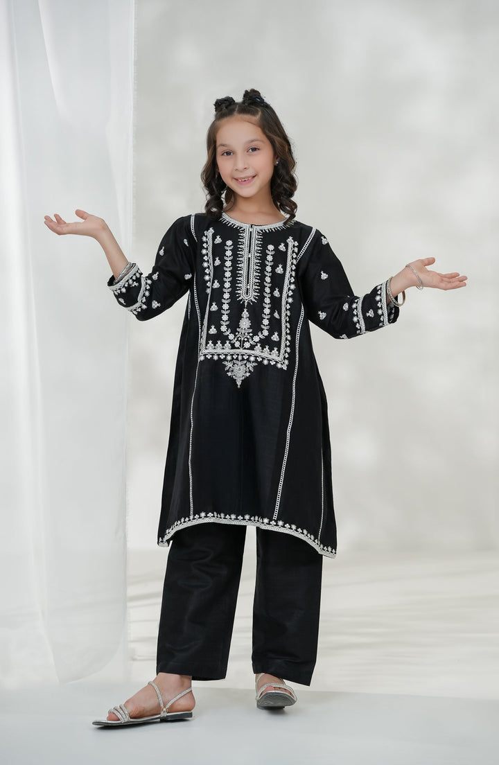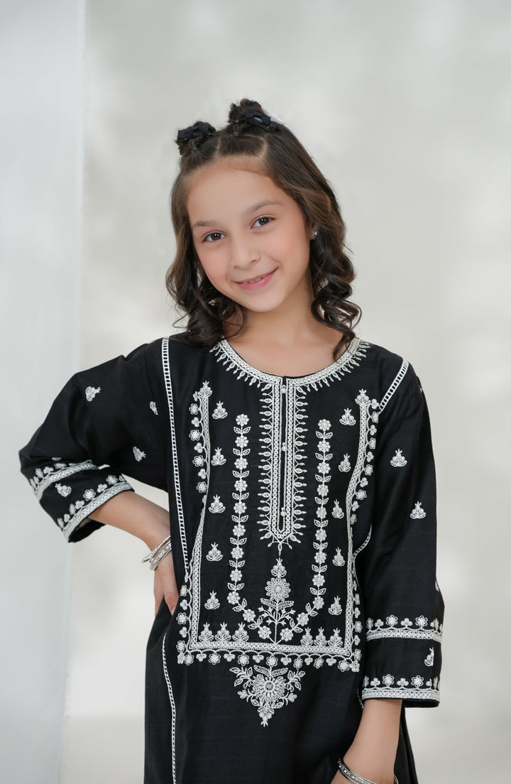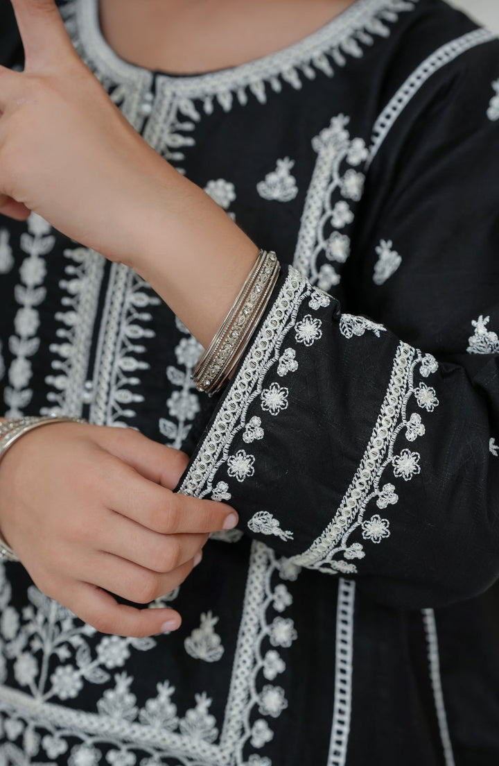 Souffle Guriya by Amna Khadija Embroidered Cotton Stitched 2 Piece Suit - SGF-13 - AM25SOFG - Black - Summer Girls Collection