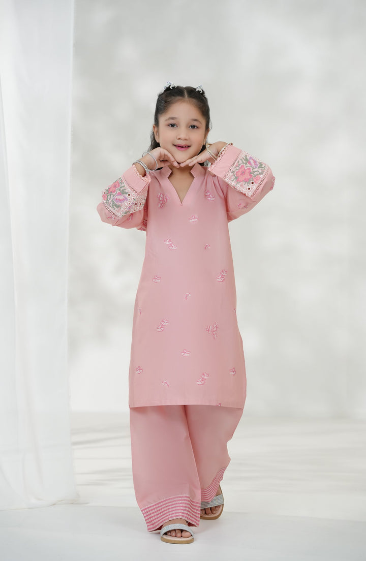 Souffle Guriya by Amna Khadija Embroidered Cotton Stitched 2 Piece Suit - SGF-14 - AM25SOFG - Pink - Summer Girls Collection