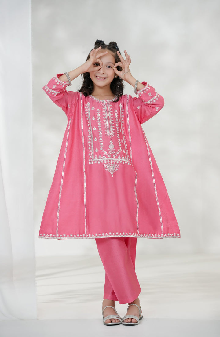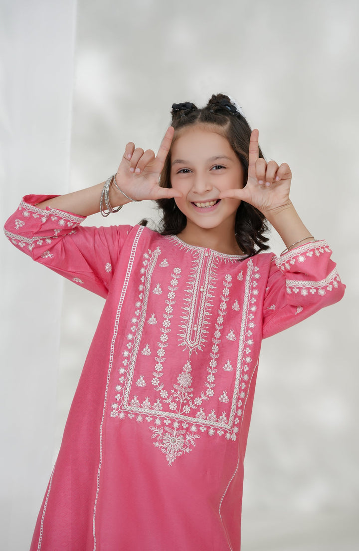 Souffle Guriya by Amna Khadija Embroidered Cotton Stitched 2 Piece Suit - SGF-15 - AM25SOFG - Pink - Summer Girls Collection